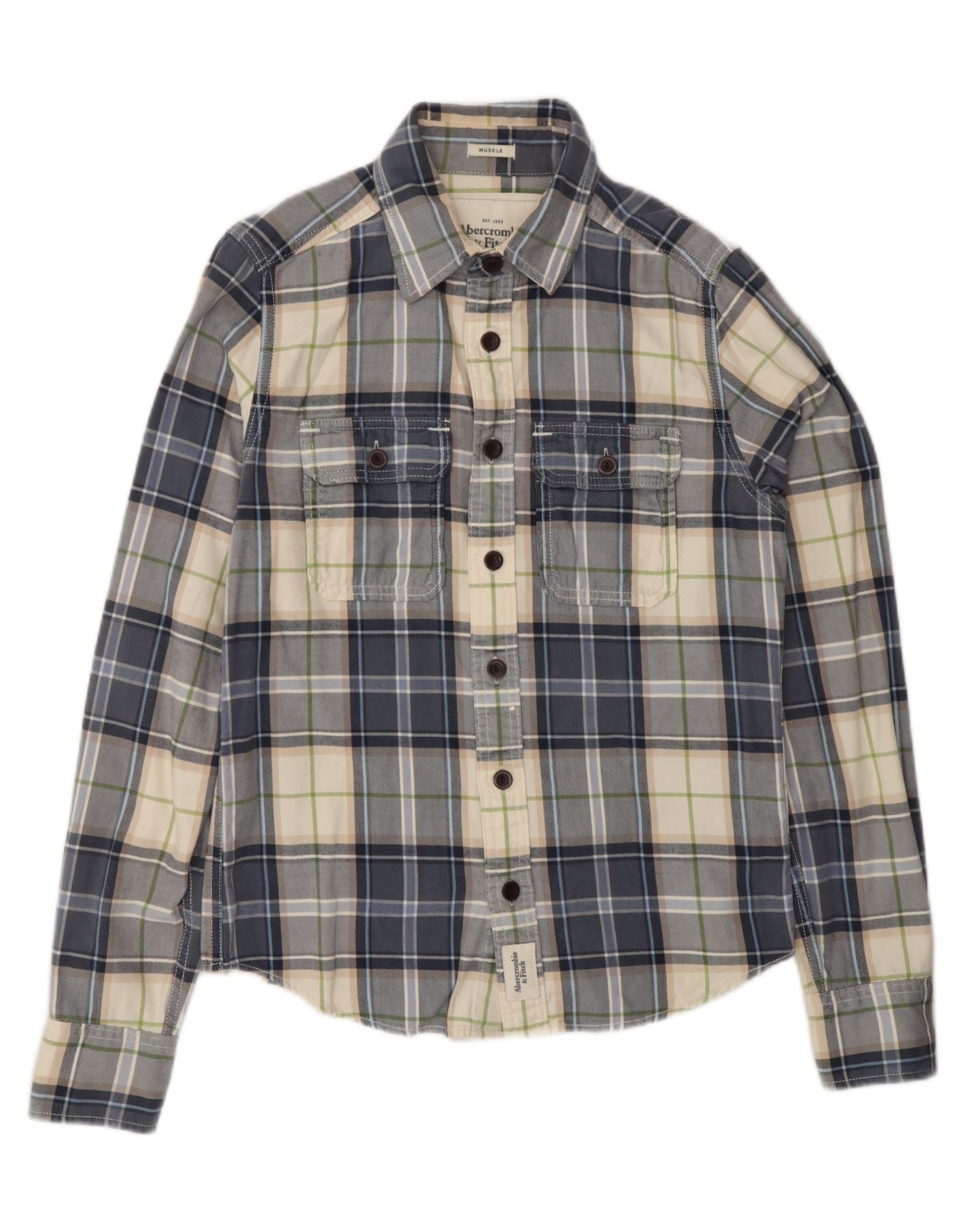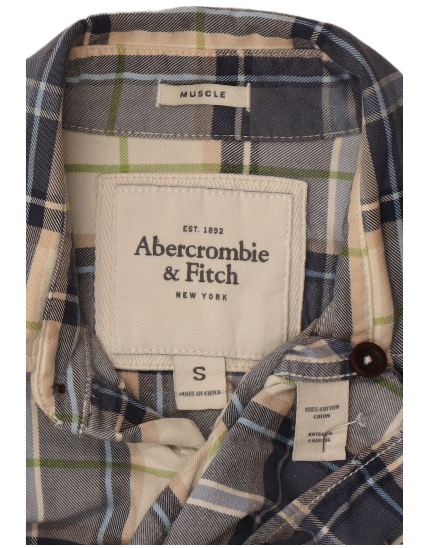 ABERCROMBIE & FITCH Camisa de franela muscular para hombre Algodón a cuadros azul pequeño