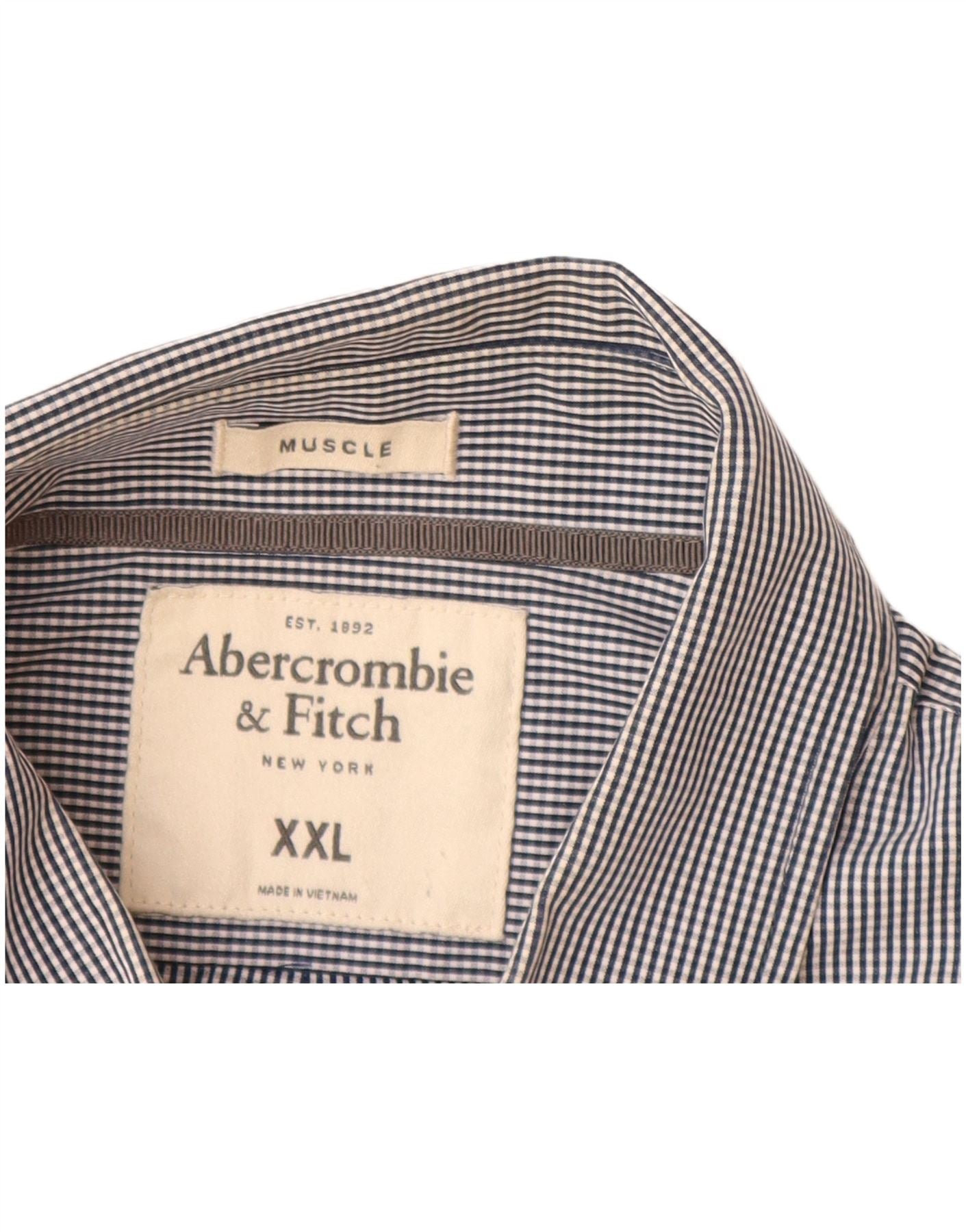 ABERCROMBIE & FITCH Camisa musculosa para hombre 2XL Algodón a cuadros azul marino