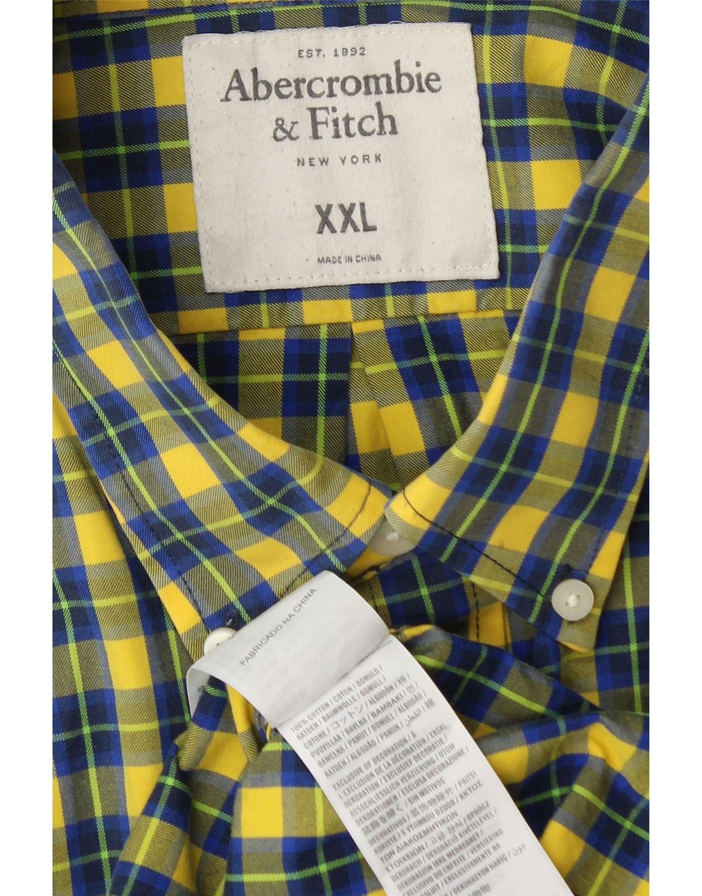 ABERCROMBIE & FITCH Camisa musculosa para hombre 2XL Algodón a cuadros amarillos