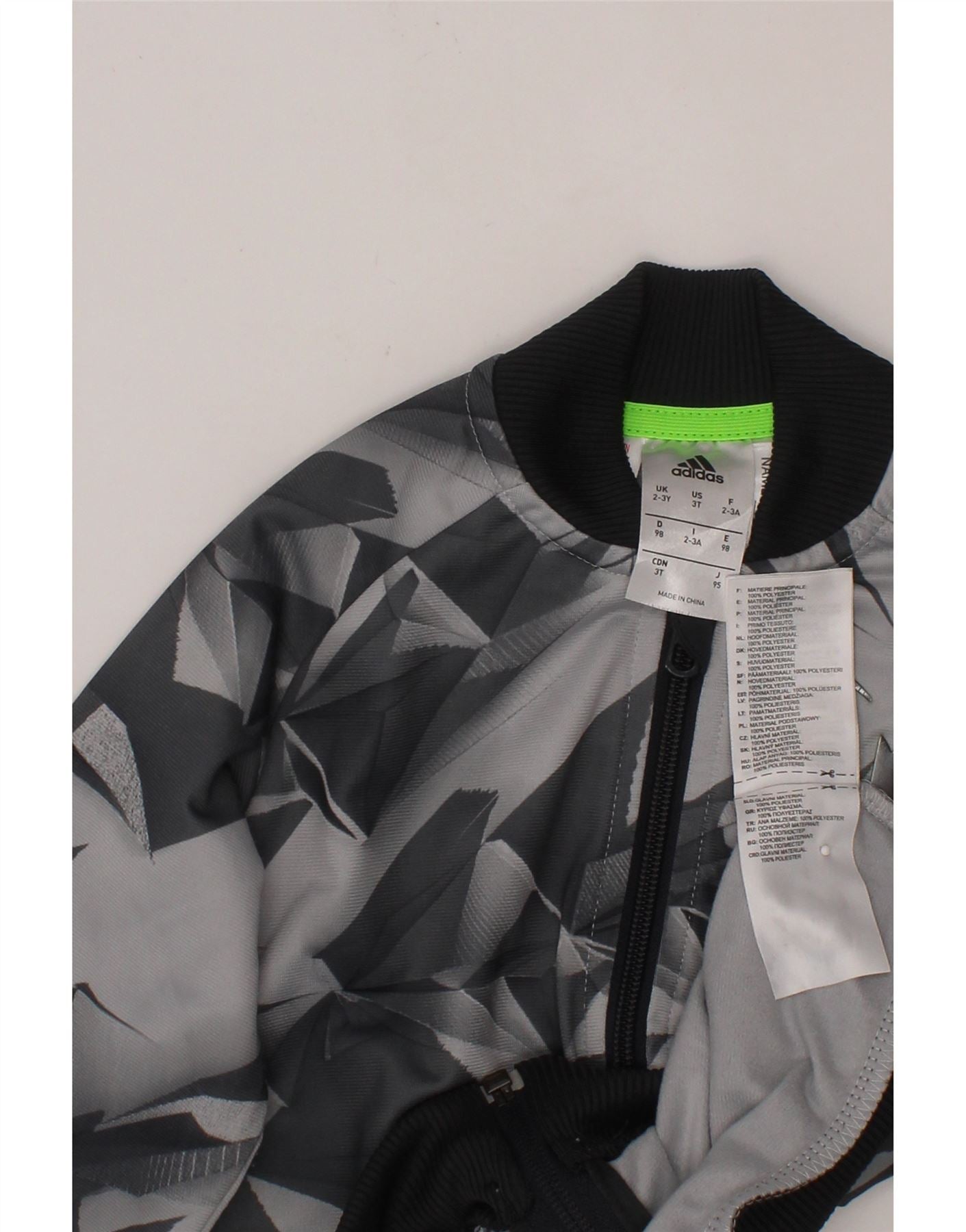 ADIDAS Boys MESSI Graphic Tracksuit Top Jacket 2-3 Years Grey Geometric