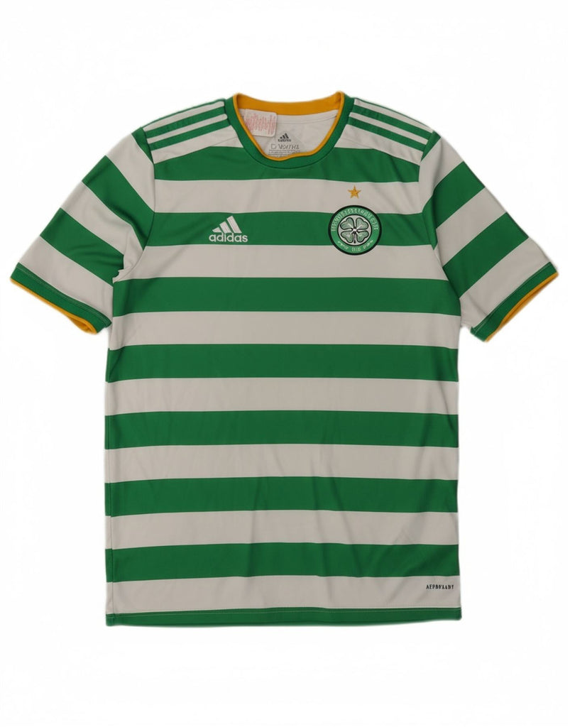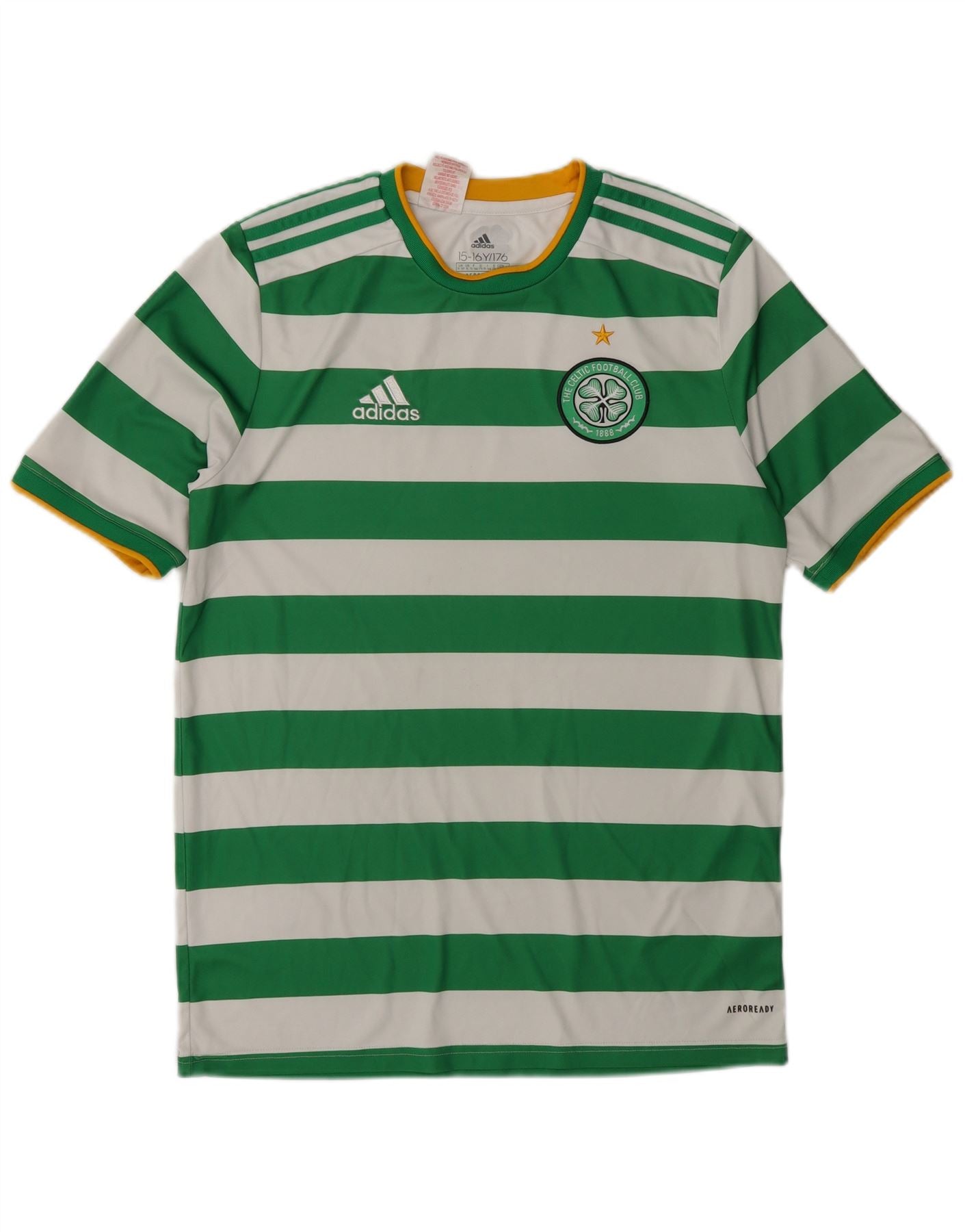 ADIDAS Boys The Celtic Football Club T-Shirt Top 15-16 Years Green Striped