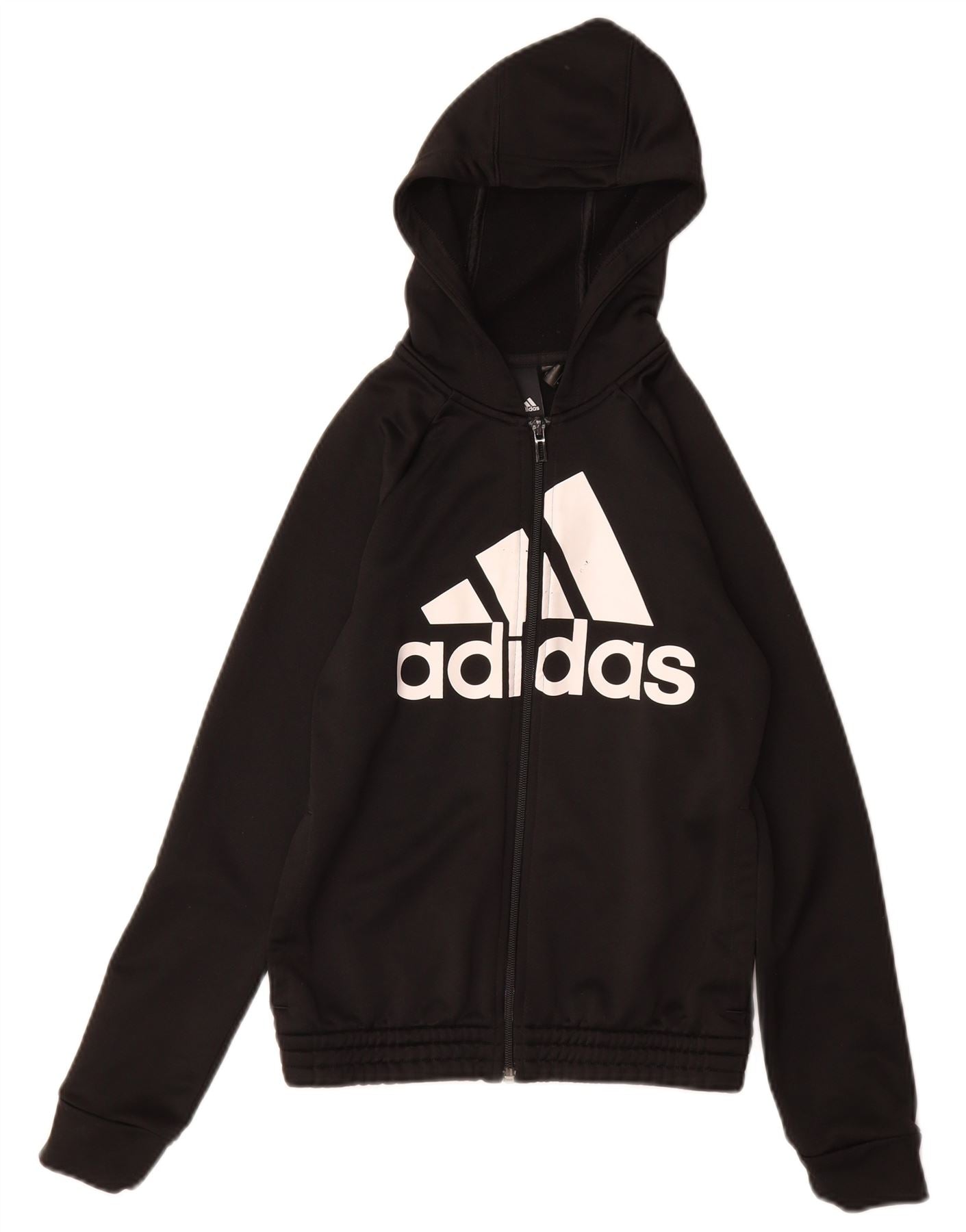 ADIDAS Sudadera con capucha y cremallera gráfica para niña 11-12 años Negro Poliéster