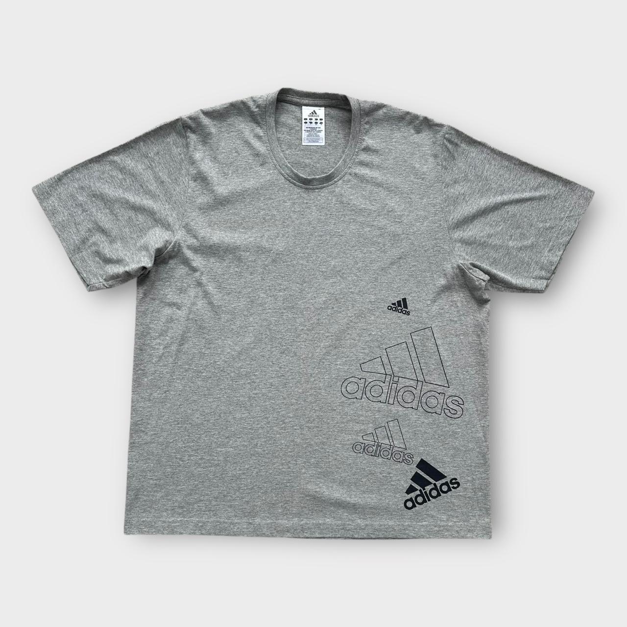 Camiseta gráfica Adidas de principios de 2000 en gris con logotipos en el pecho y la espalda