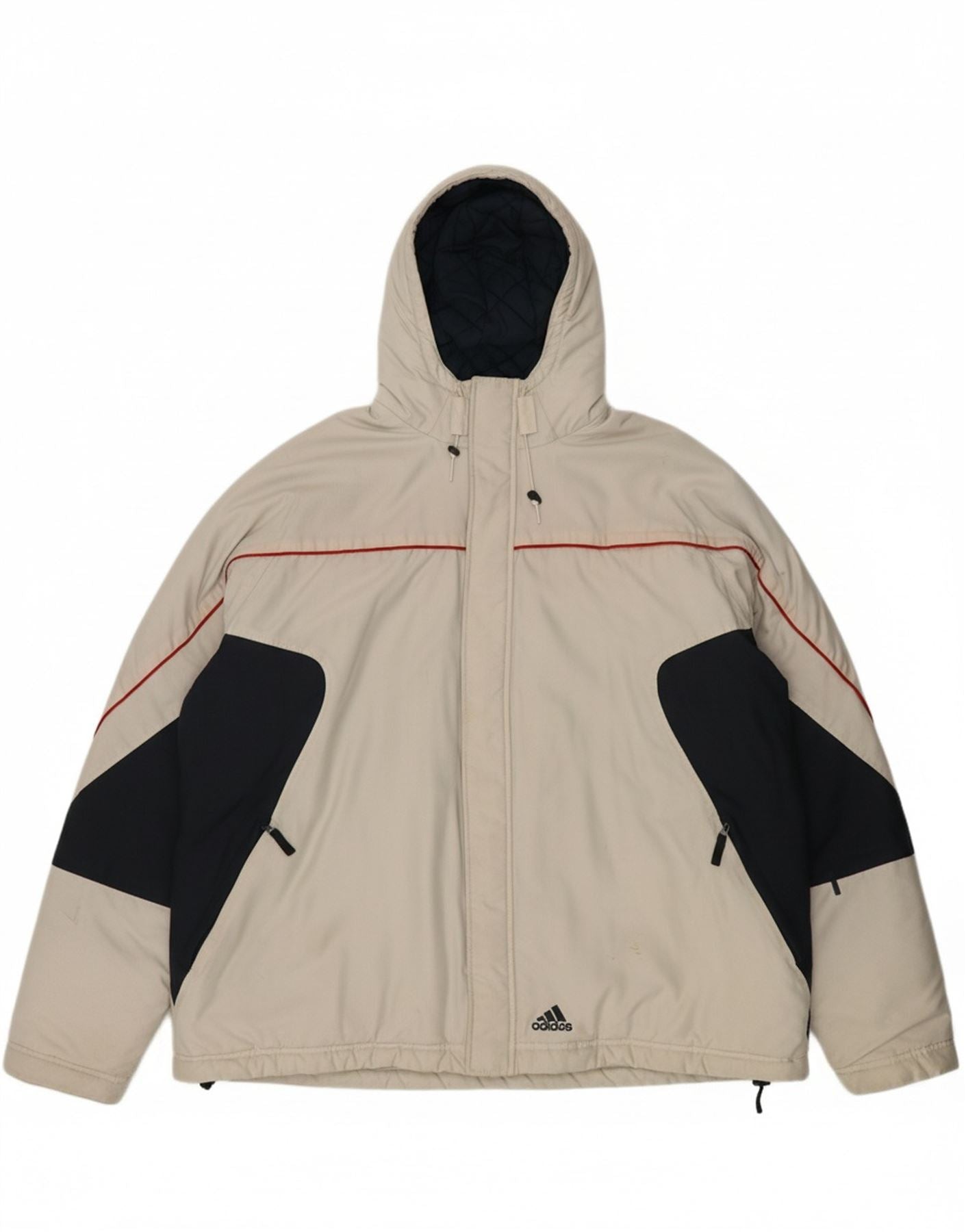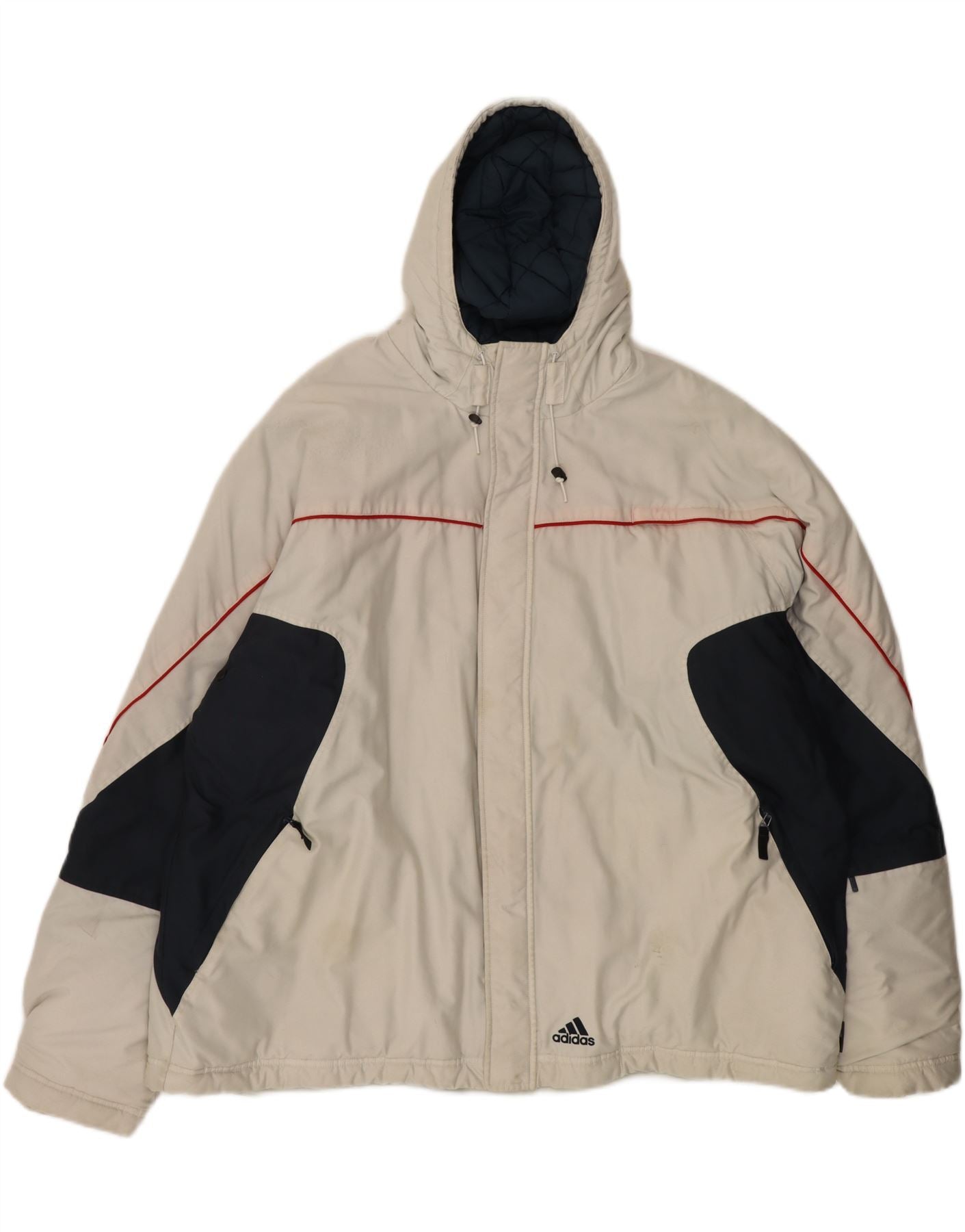 ADIDAS Mens Clima Proof Windbreaker Jacket UK 42 2XL Off White Colourblock