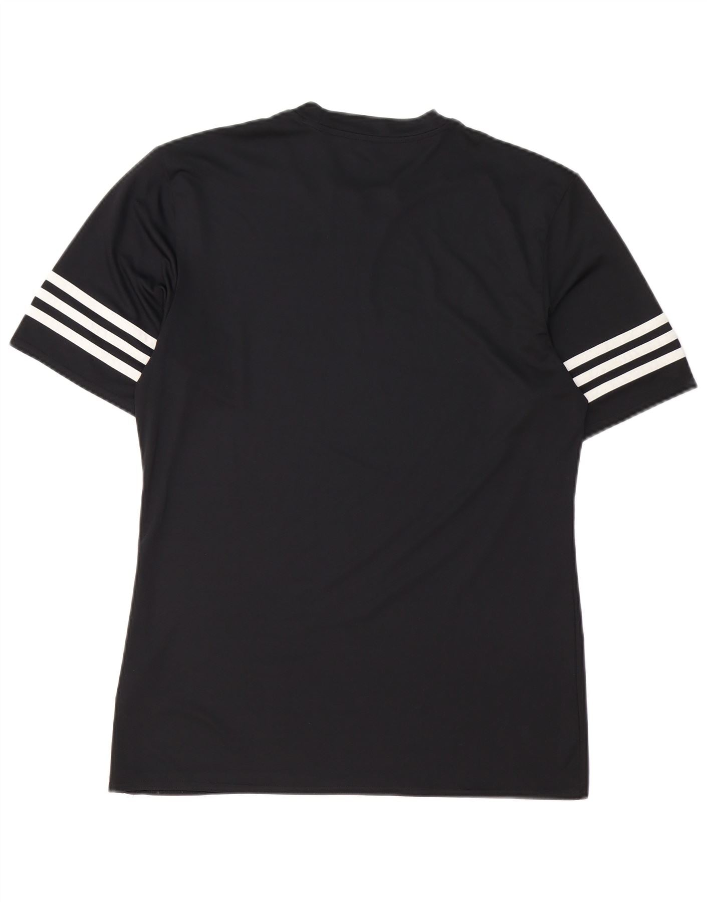 - Descripción de IA: Esta camiseta gráfica Adidas para hombre está confeccionada con un ligero jersey de poliéster negro. Presenta un cuello redondo clásico y mangas cortas para un ajuste atlético. El tejido transpirable Climalite garantiza comodidad durante el entrenamiento. Las icónicas tres rayas blancas adornan las mangas, complementando el logotipo de Adidas en el pecho. Este diseño de jersey ofrece un ajuste regular, perfecto para actividades deportivas.
