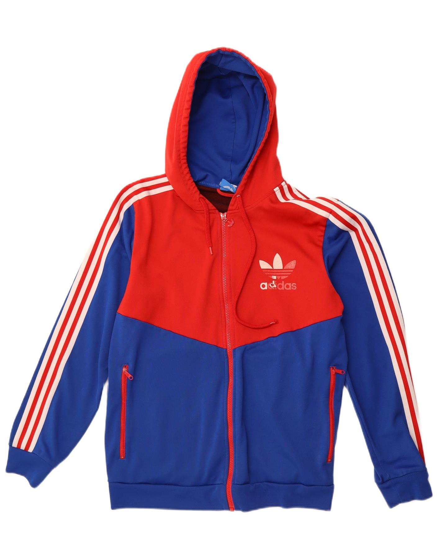 ADIDAS Suéter con capucha y cremallera gráfica para hombre Poliéster con bloques de color azul grande