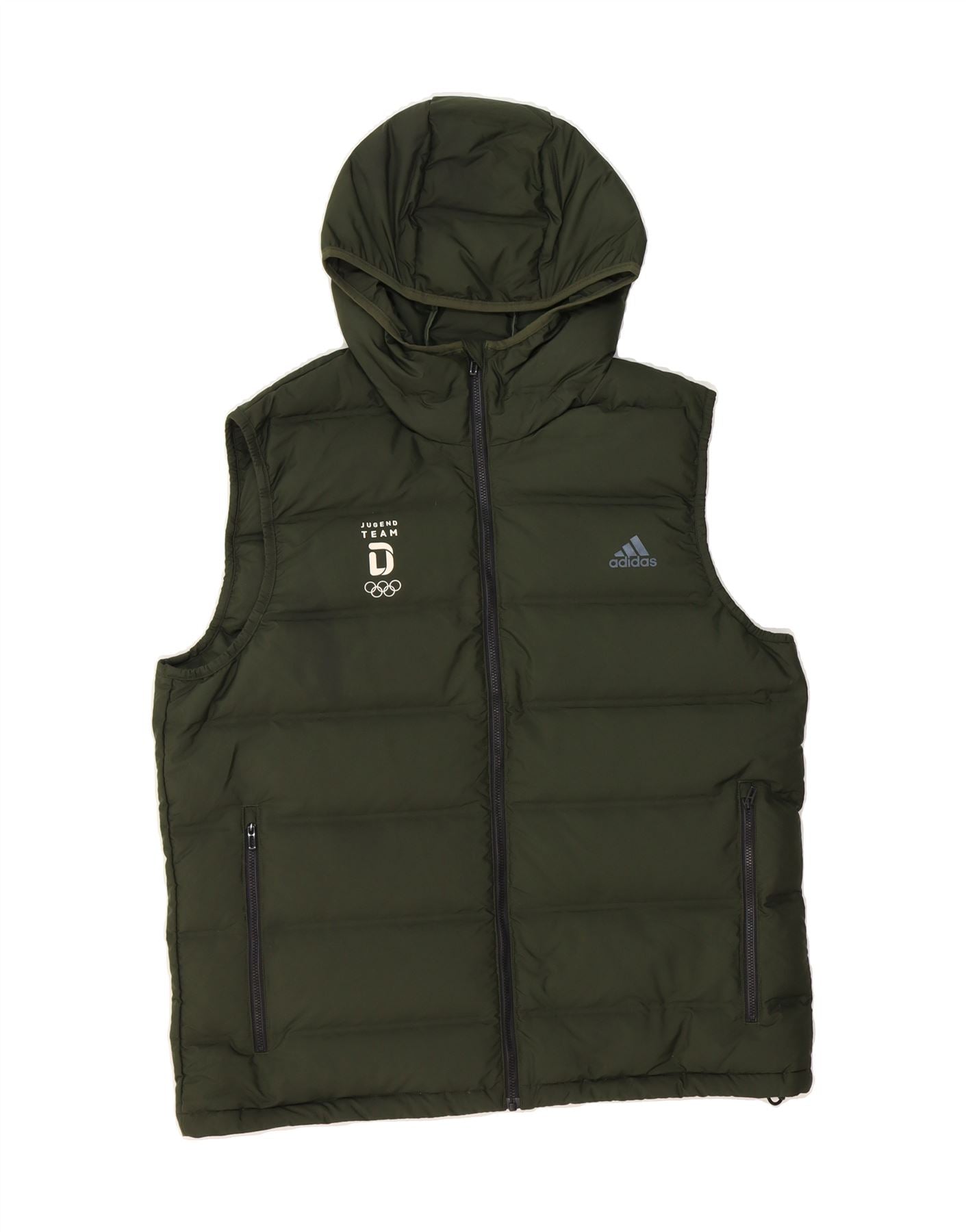 ADIDAS Mens Hooded Padded Gilet UK 40 Large Green Polyester