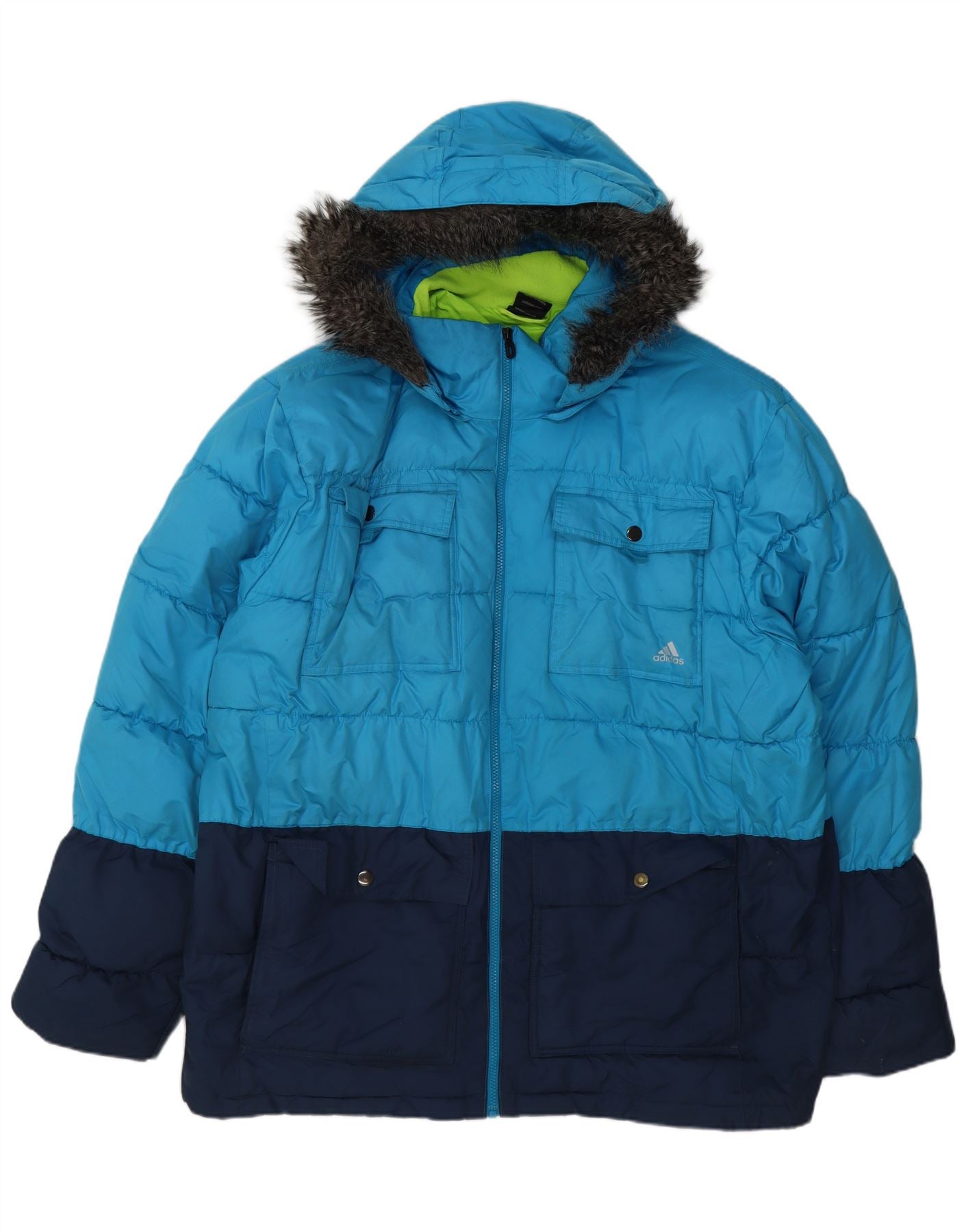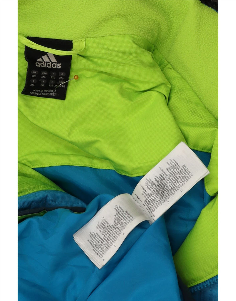 ADIDAS Mens Hooded Padded Jacket UK 44 2XL Blue Colourblock Polyester