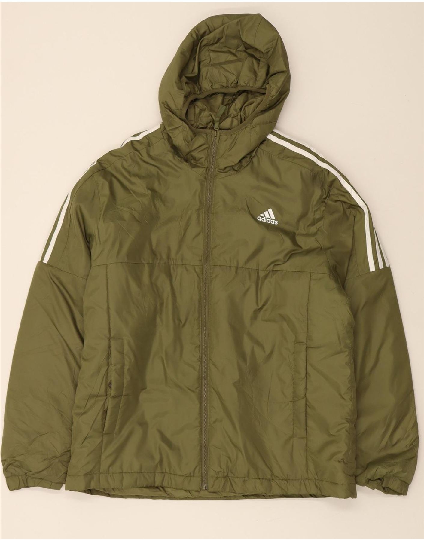 ADIDAS Mens Hooded Windbreaker Jacket UK 40 Large Khaki Polyester