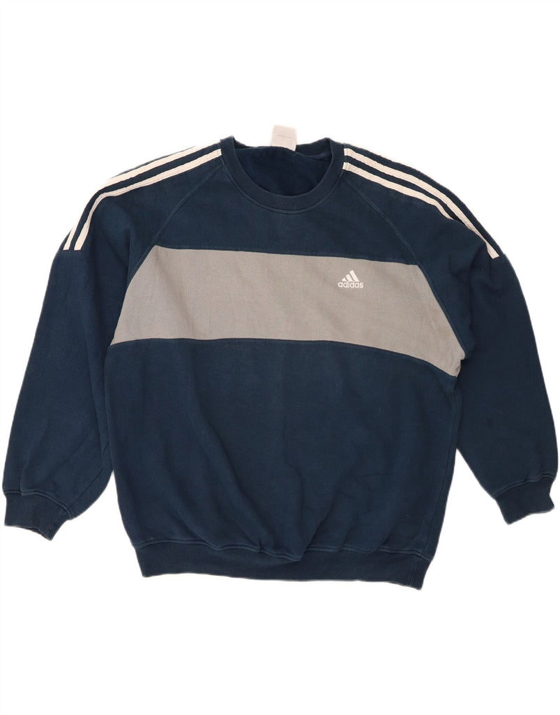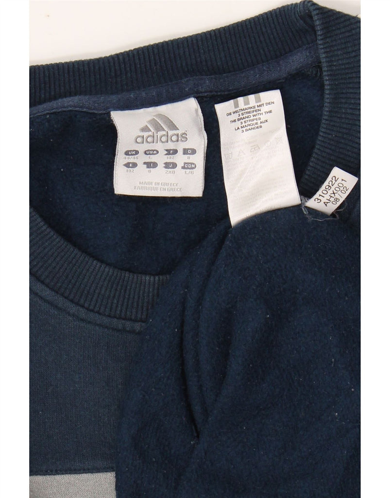 ADIDAS Mens Sweatshirt Jumper UK 44/46 Large Navy Blue Colourblock Cotton