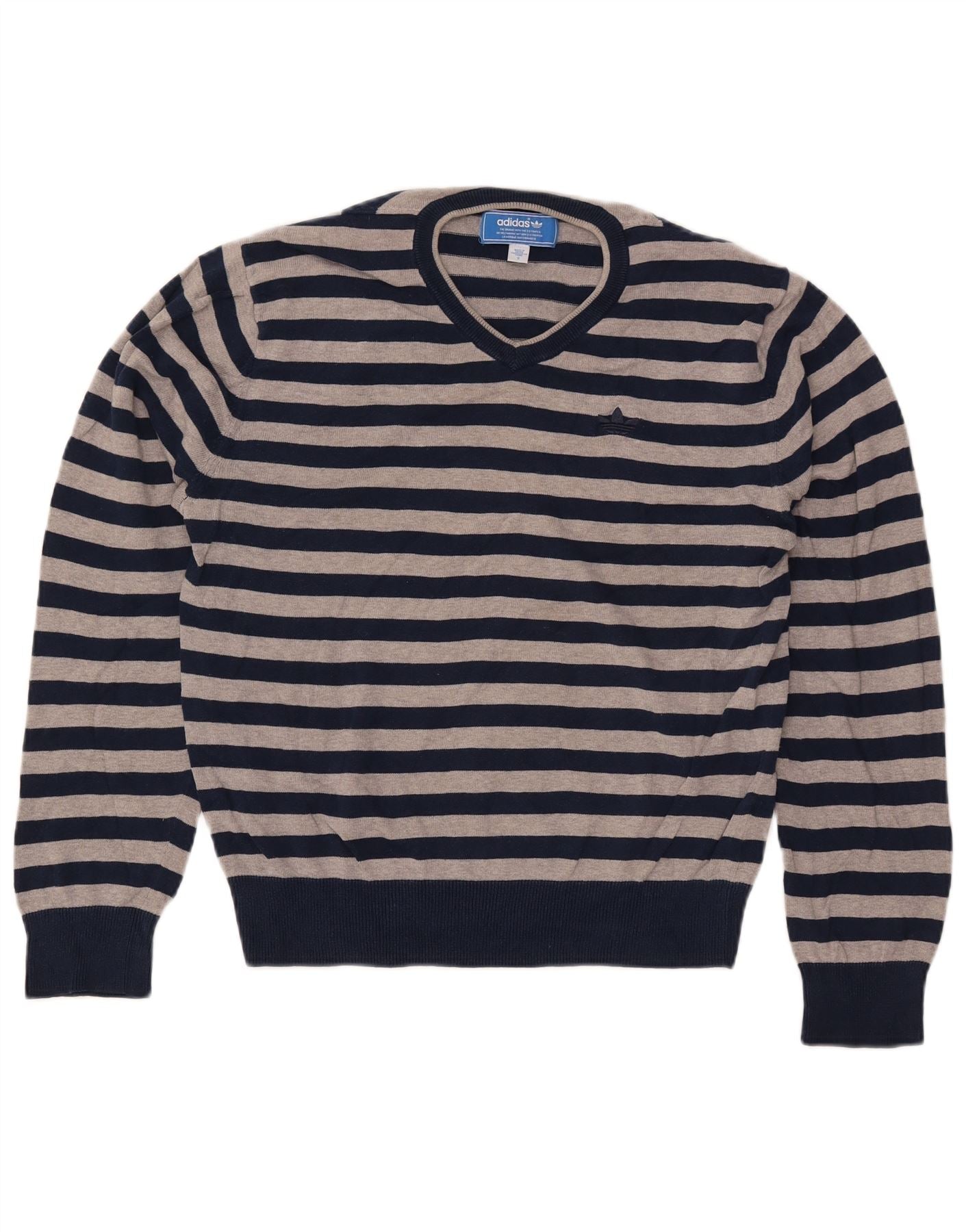 ADIDAS Jersey con cuello en V para hombre pequeño algodón a rayas azul marino
