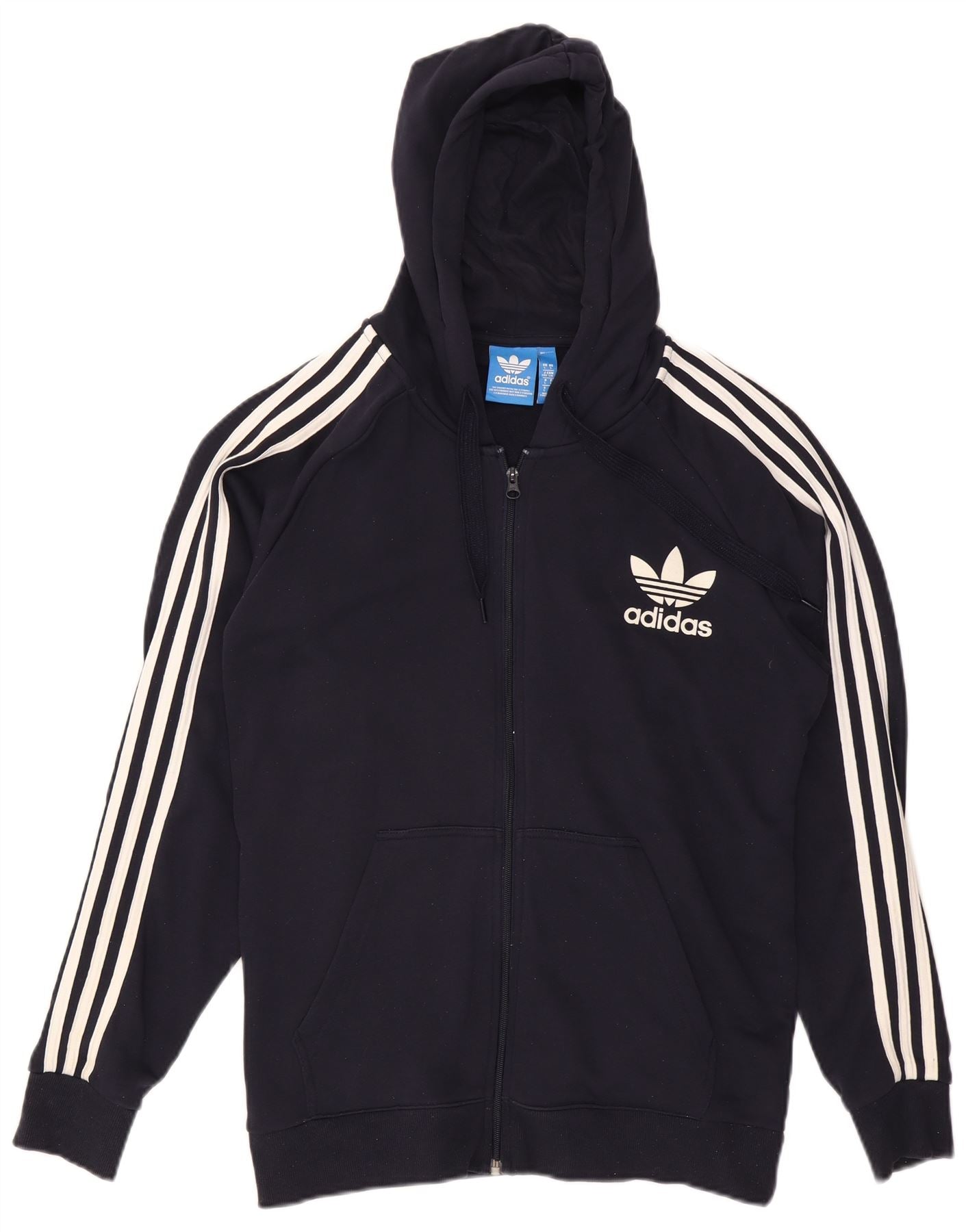 ADIDAS Sudadera con capucha y cremallera para hombre, talla grande, algodón azul marino