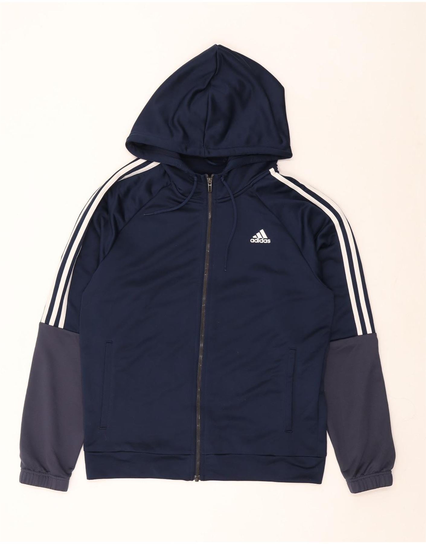ADIDAS Sudadera con capucha y cremallera para hombre Reino Unido 44/46 Grande Azul marino Colorblock
