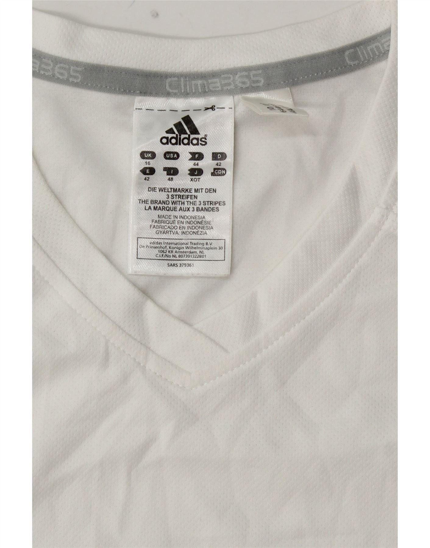 ADIDAS Mujer Clima 365 Camiseta Top UK 40 Grande Blanco Colorblock