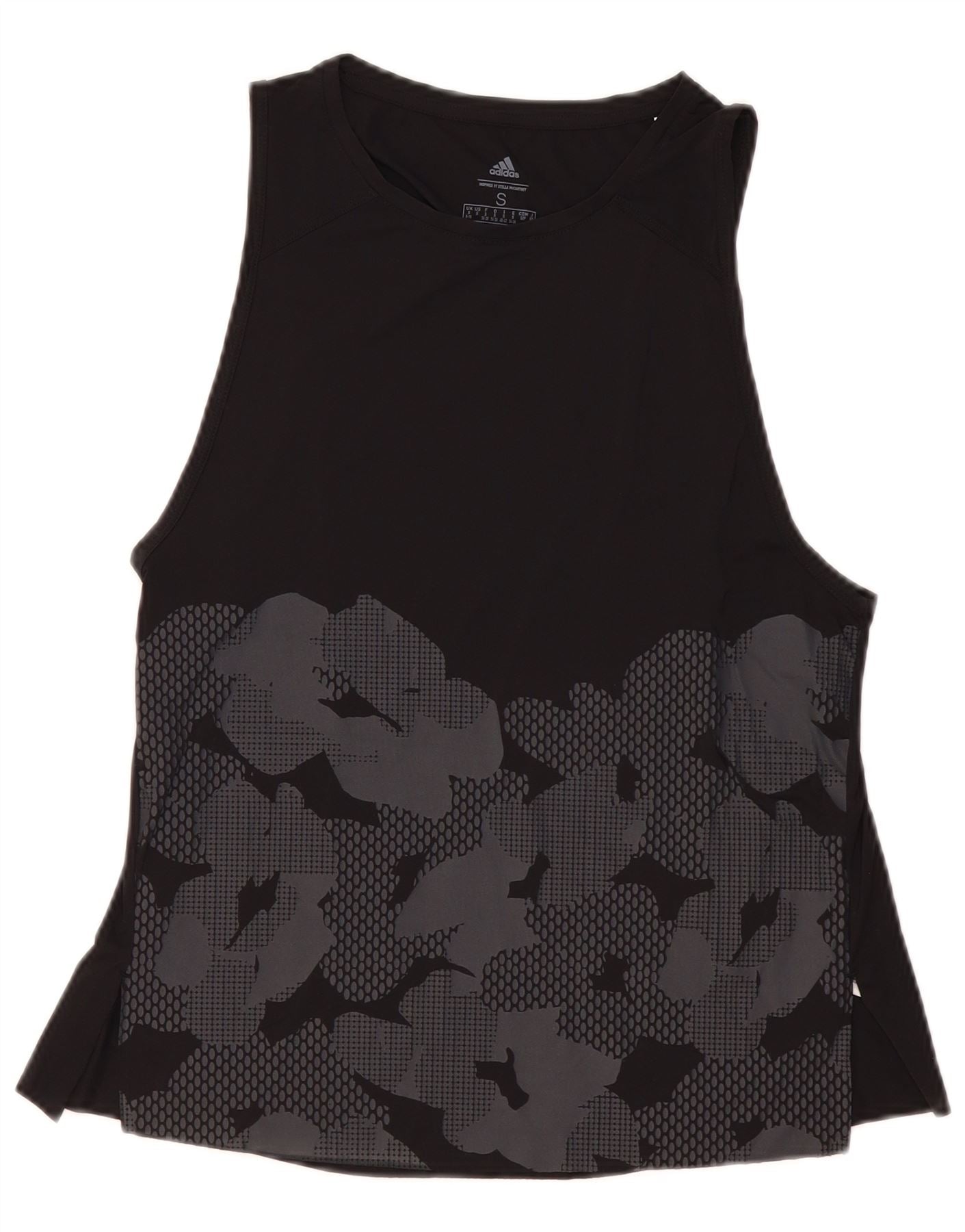 ADIDAS Mujer Climalite Chaleco Top UK 8/10 Pequeño Negro Camuflaje Nylon