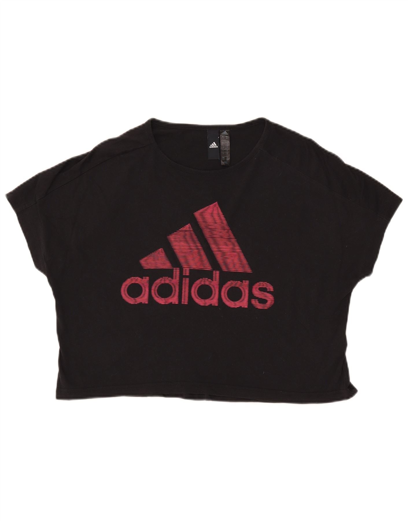 ADIDAS Camiseta corta gráfica para mujer Reino Unido 12/14 Algodón negro mediano