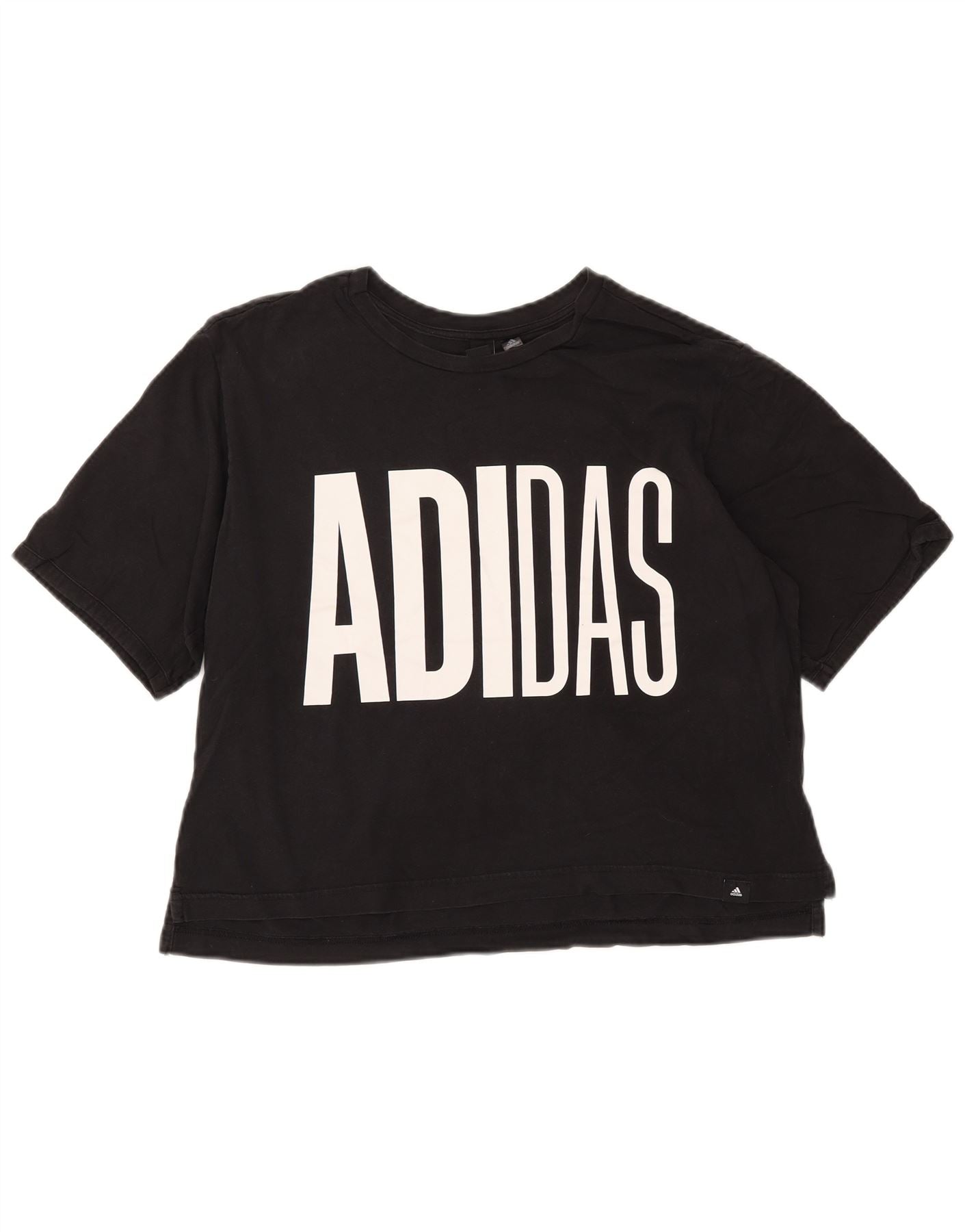 ADIDAS Camiseta corta gráfica para mujer Reino Unido 16/18 Grande Algodón negro