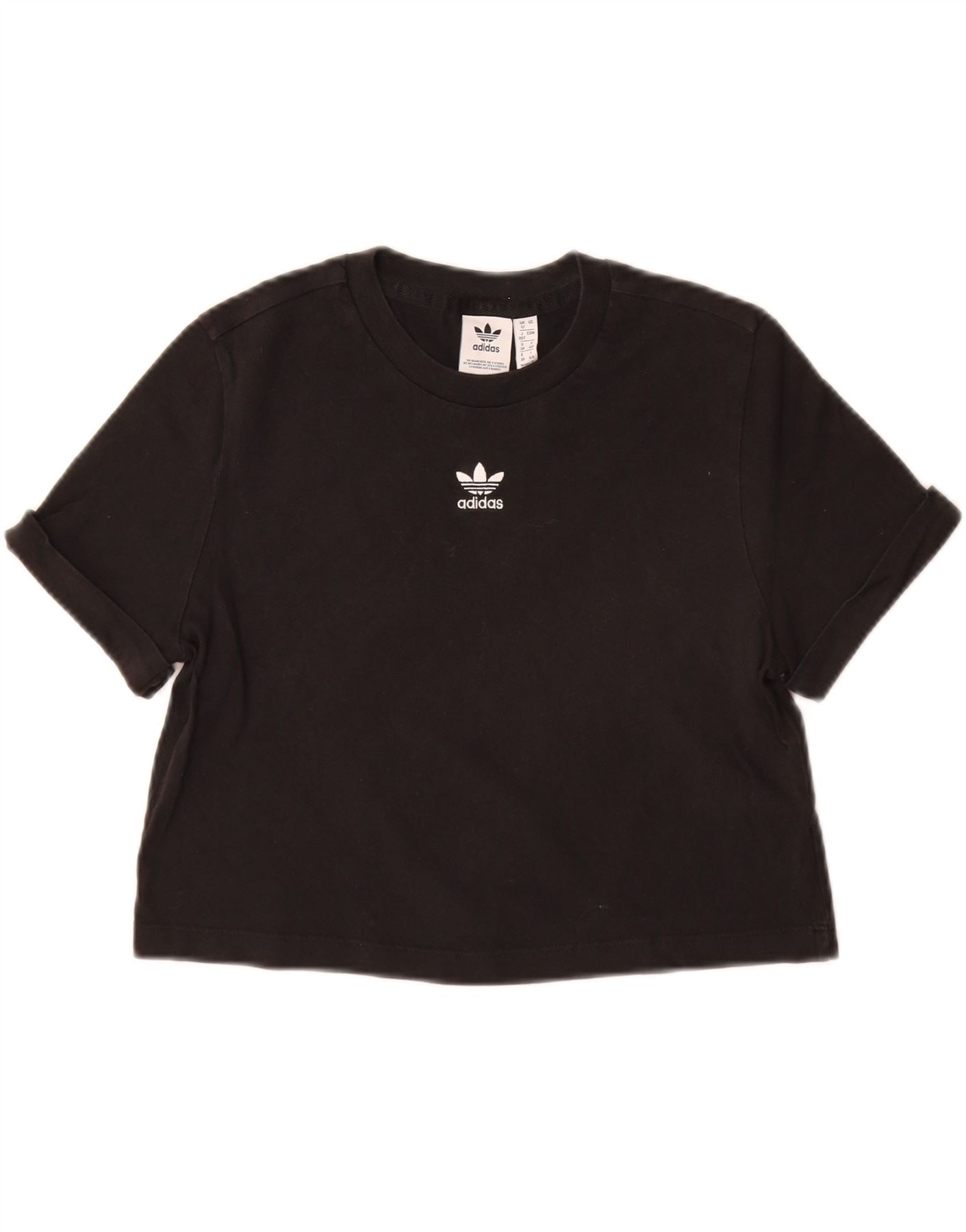 ADIDAS Camiseta corta para mujer UK 12 Mediana Algodón negro