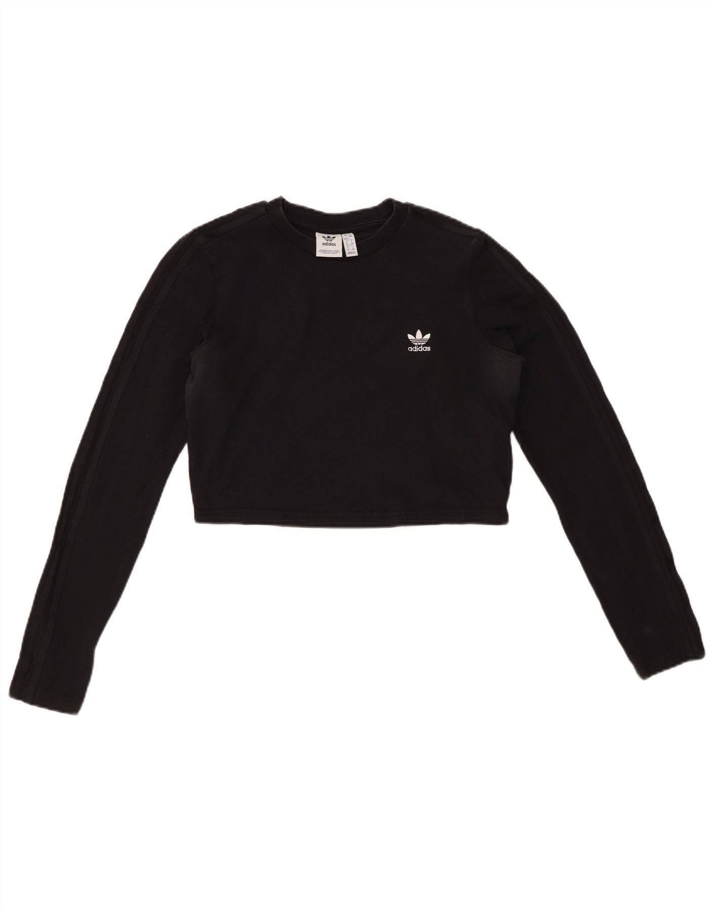 ADIDAS Top corto para mujer de manga larga UK 46 Grande Algodón negro