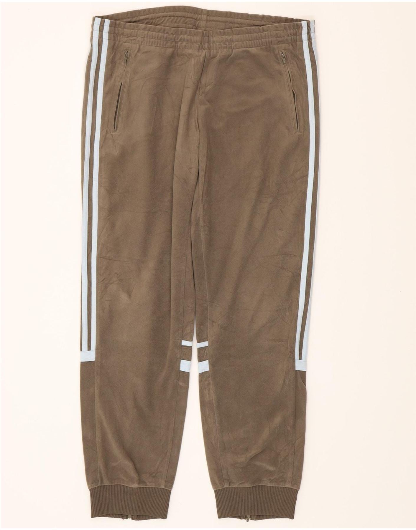 ADIDAS Womens Fleece Tracksuit Trousers Joggers UK 14 Large Khaki