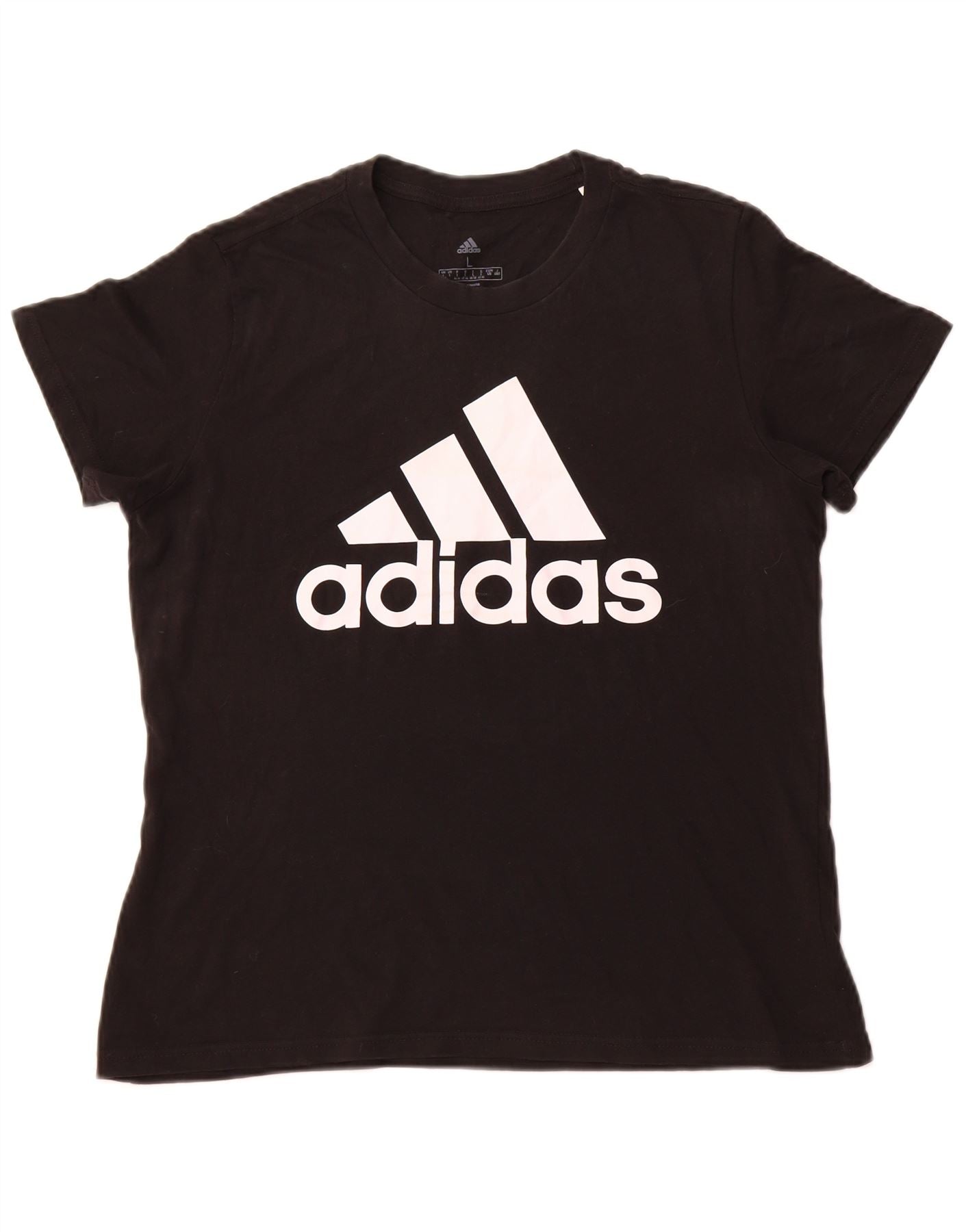 ADIDAS Camiseta gráfica para mujer Top UK 16/18 Grande Algodón negro