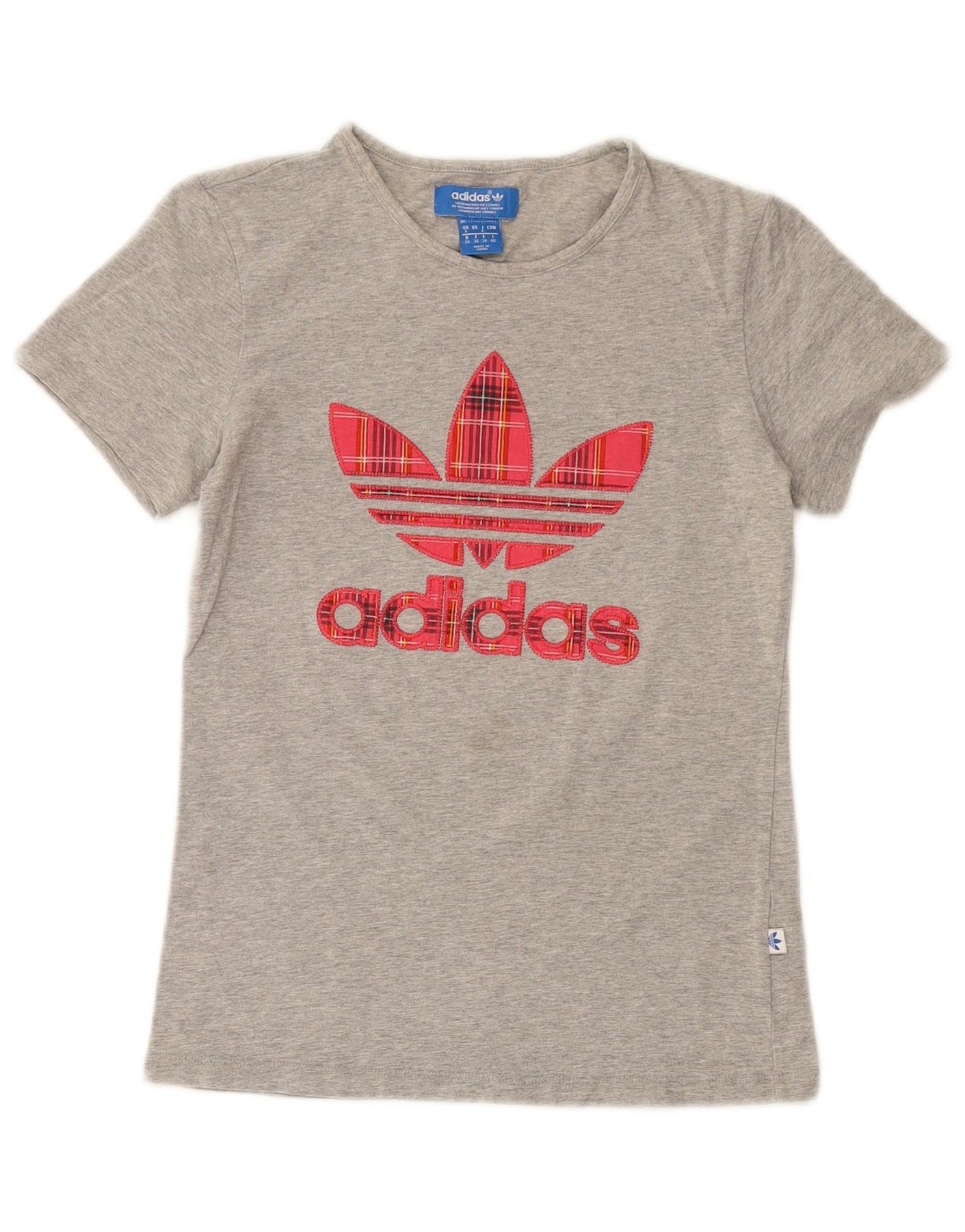 ADIDAS Camiseta gráfica para mujer Top UK 8 Pequeño algodón moteado gris