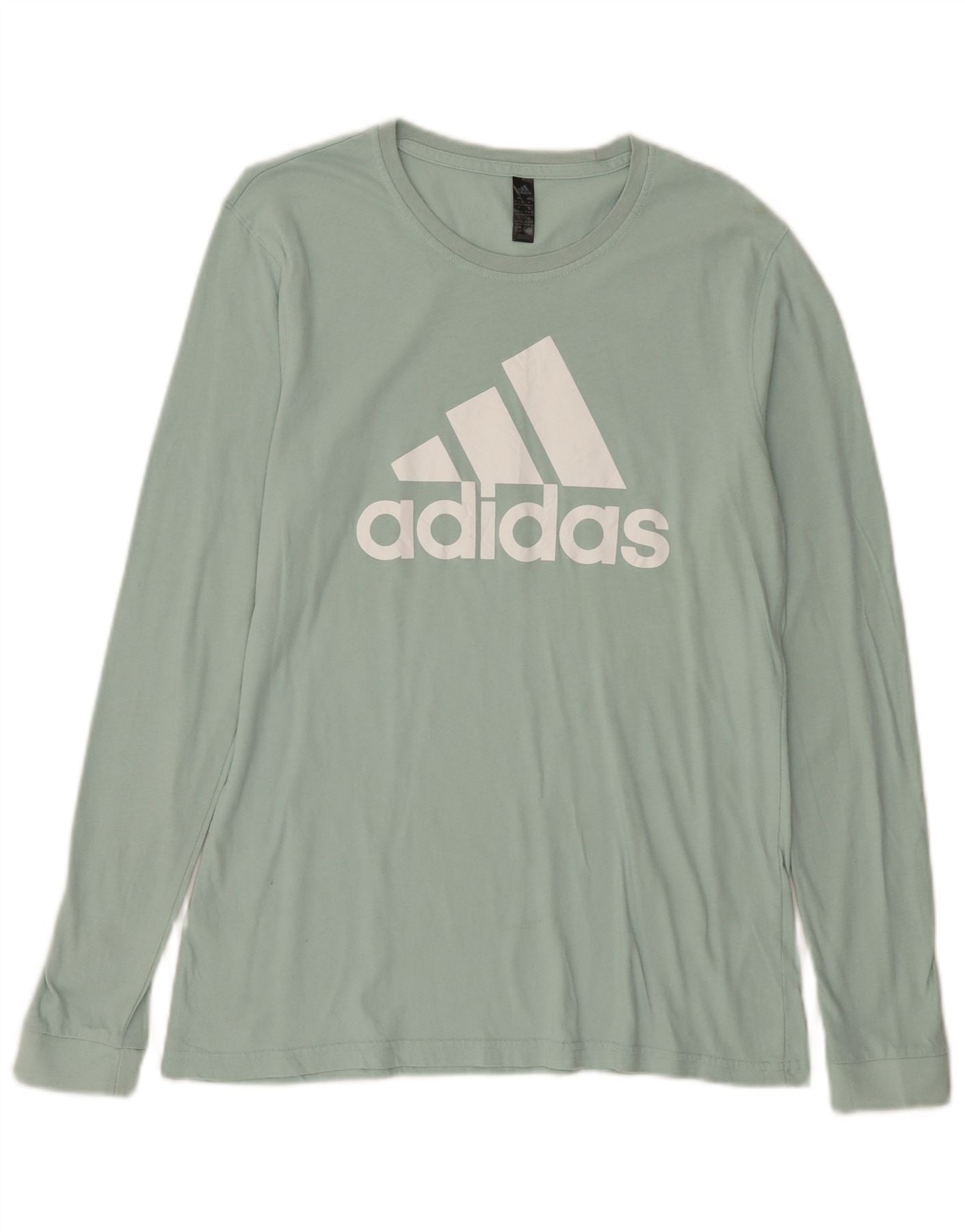 ADIDAS Mujer Gráfico Top Manga Larga UK 12/14 Verde Medio