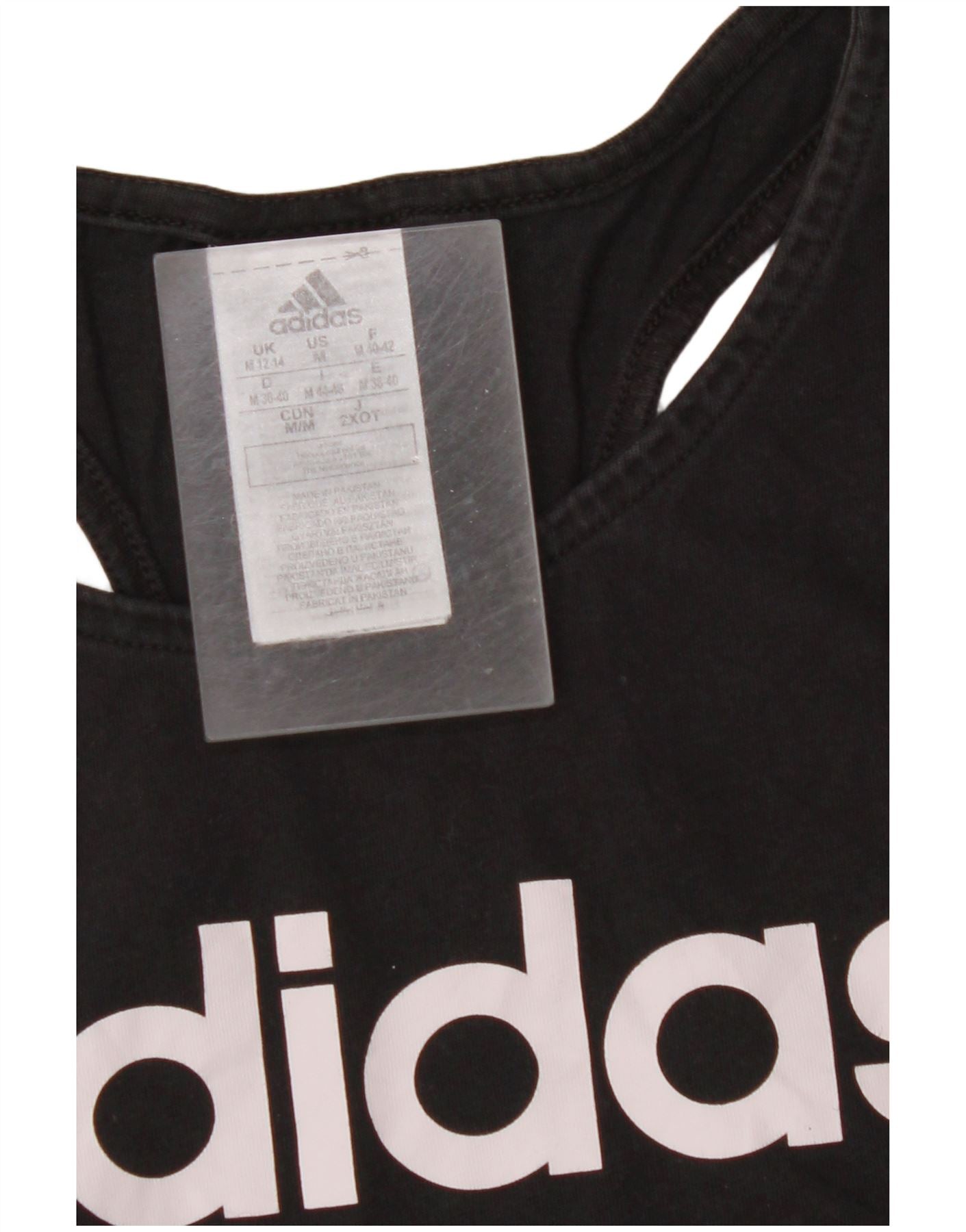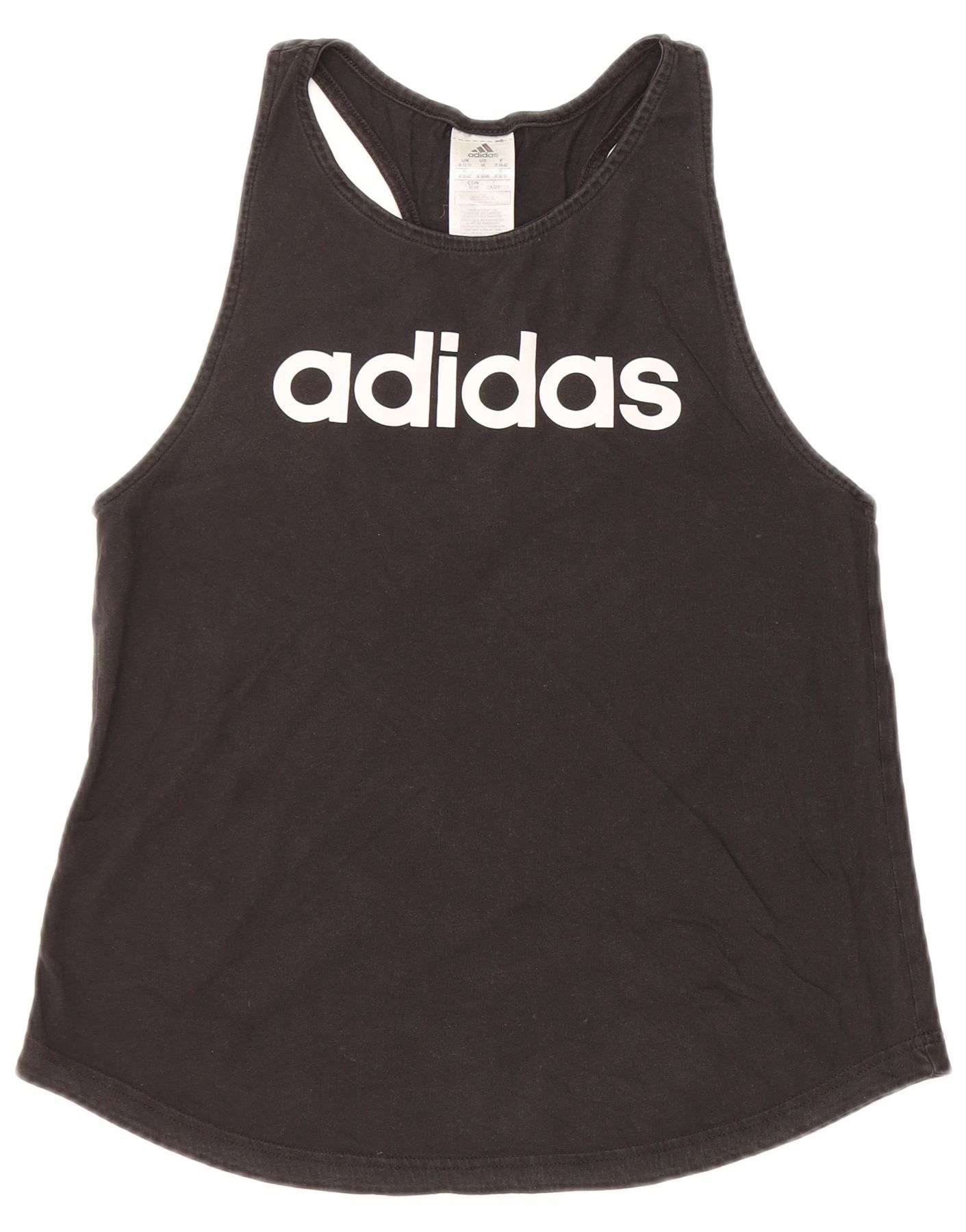 ADIDAS Camiseta sin mangas gráfica para mujer Reino Unido 12/14 Algodón negro mediano