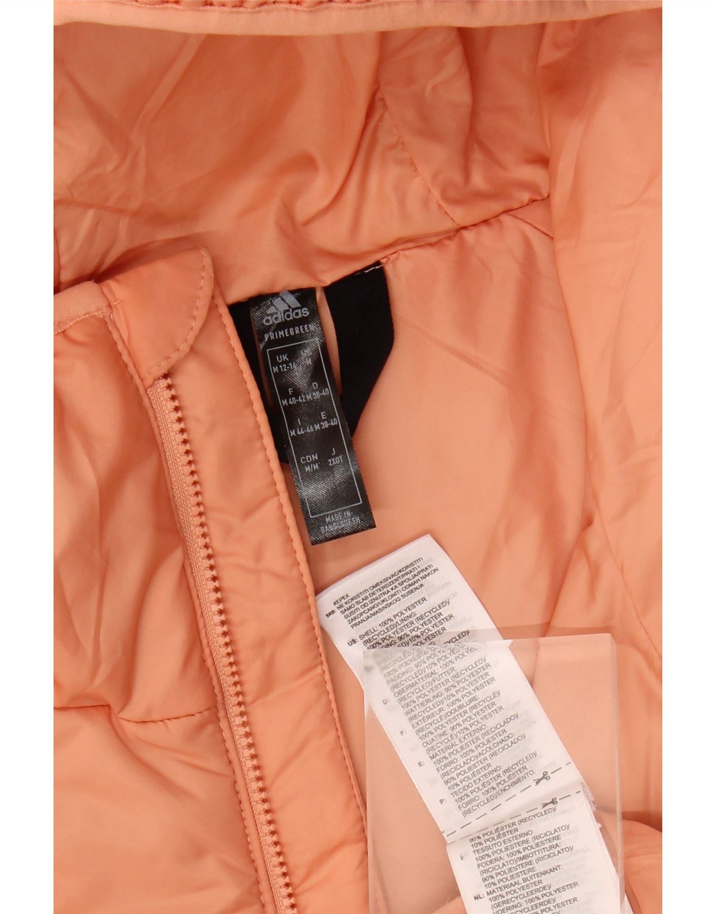 ADIDAS Womens Hooded Padded Jacket UK 12/14 Medium Orange Polyester