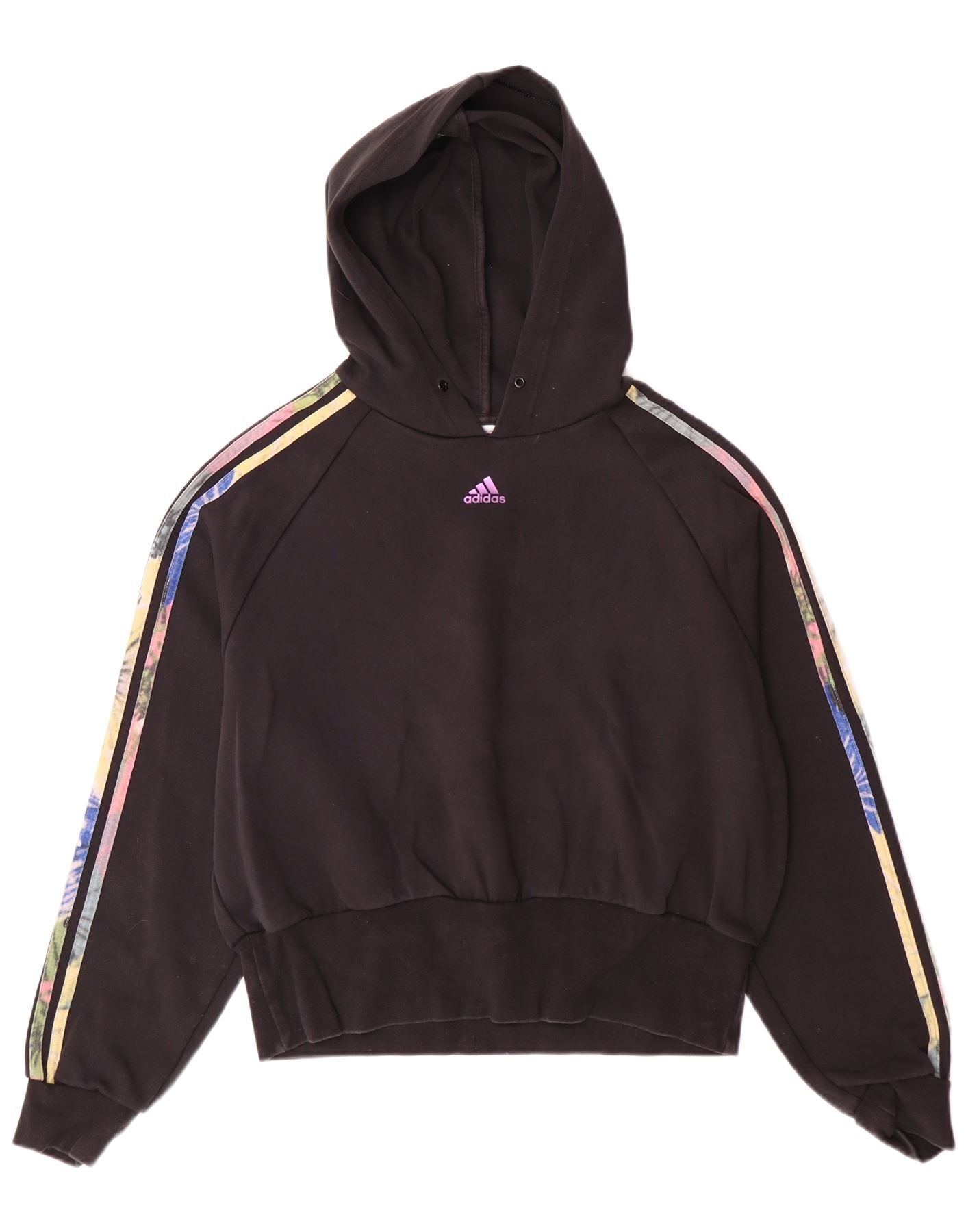 ADIDAS Womens Loose Fit Crop Hoodie Jumper UK 16/18 Large Black Cotton