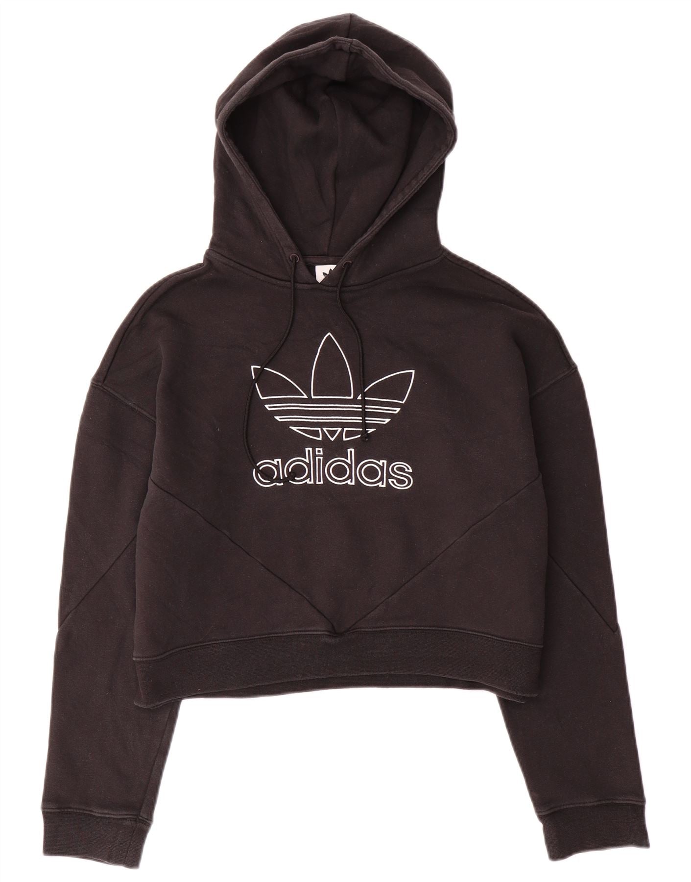 ADIDAS Sudadera con capucha gráfica de gran tamaño para mujer Reino Unido 10 Pequeño Algodón negro