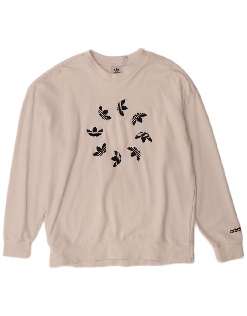 ADIDAS Sudadera con gráfico extragrande para mujer UK 12 Medium Off White