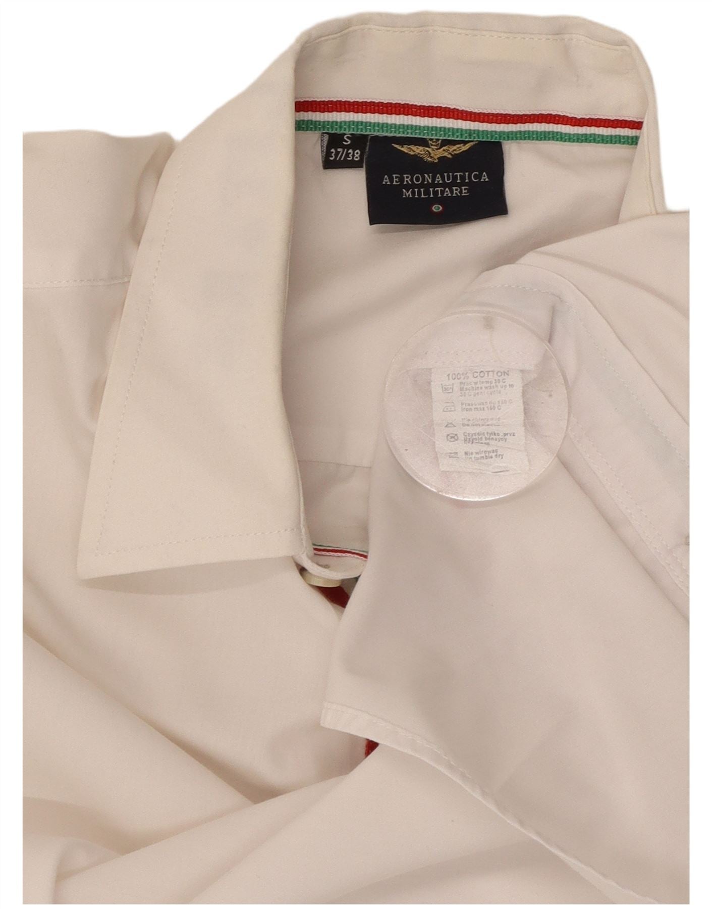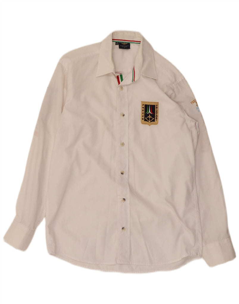 AERONAUTICA MILITARE Mens Graphic Shirt Size 37/38 Small White Cotton