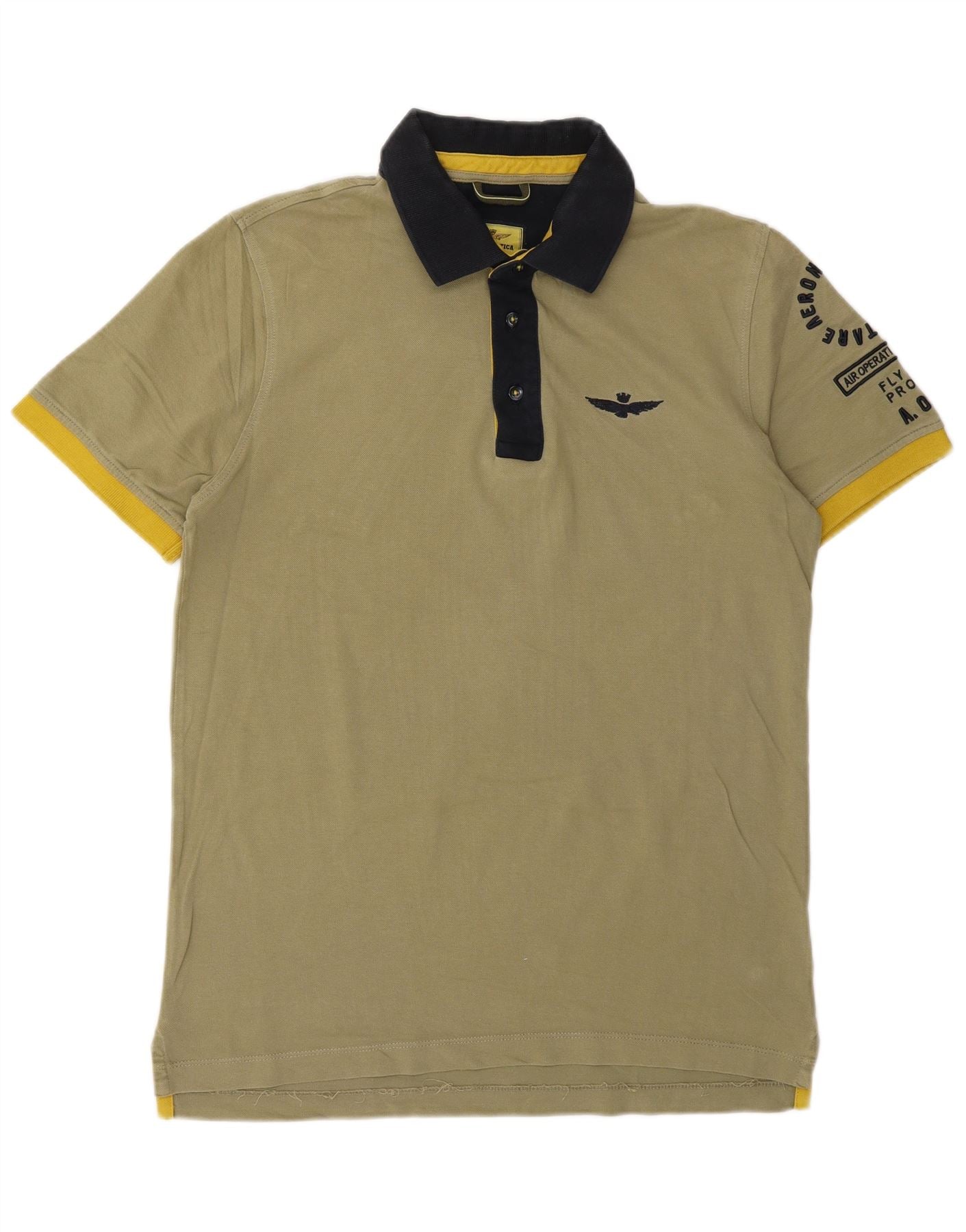AERONAUTICA MILITARE Polo de corte entallado con gráfico para hombre de algodón caqui medio