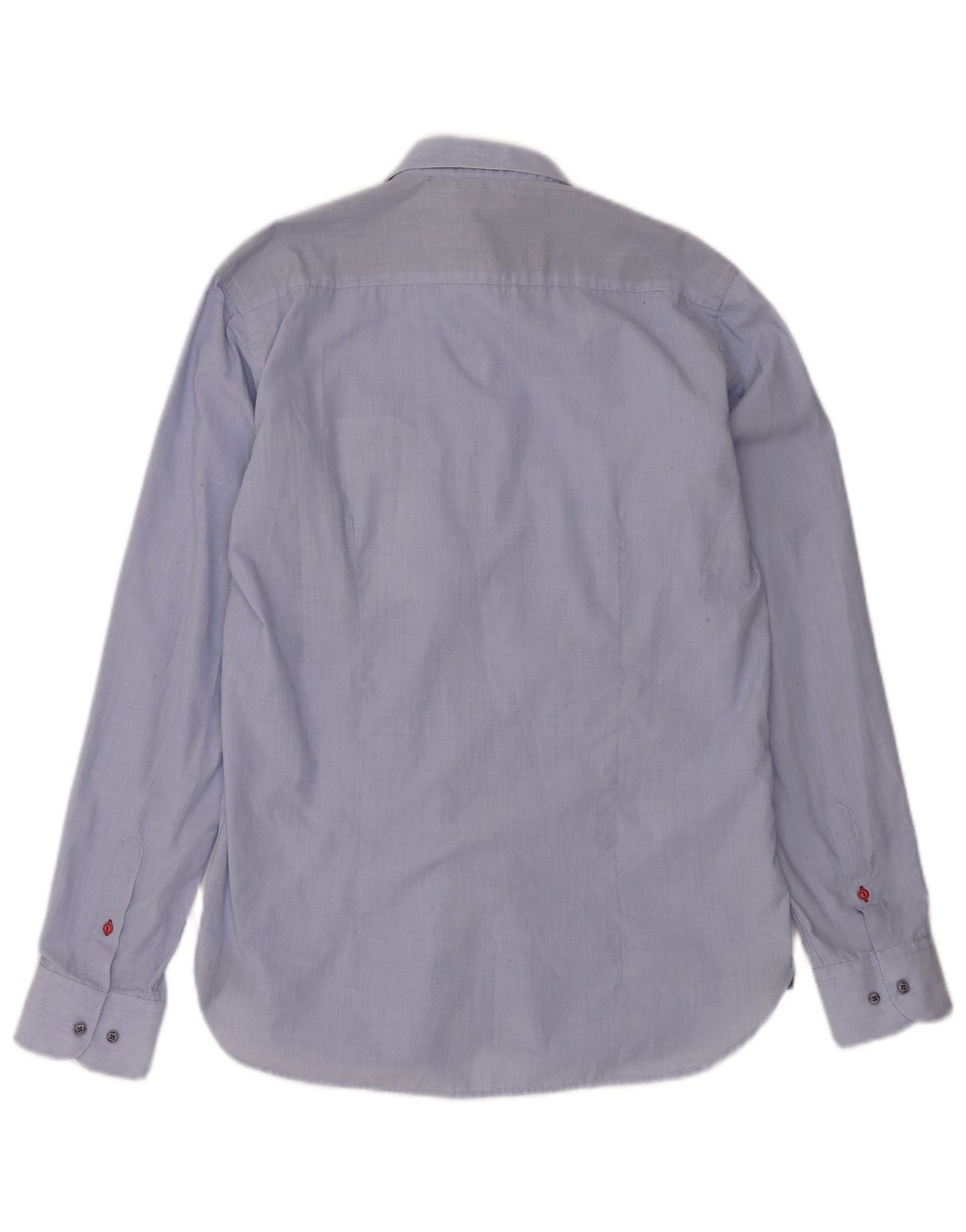 - Descripción de IA: Esta camisa vintage para hombre está confeccionada con una mezcla de tela azul, una suave mezcla de poliéster y algodón. Presenta un escote de cuello clásico y manga larga. La parte delantera con botones y el corte estándar ofrecen una silueta atemporal. Un sutil bolsillo en el pecho añade un detalle práctico. Los botones tonales completan el look refinado.