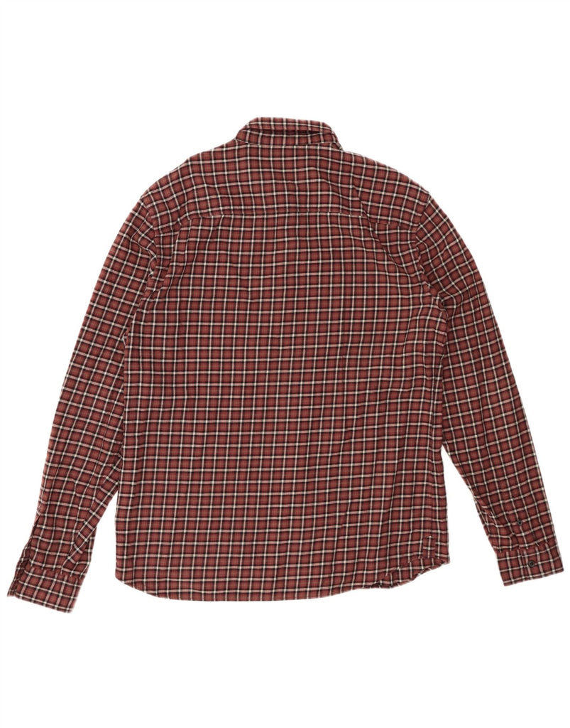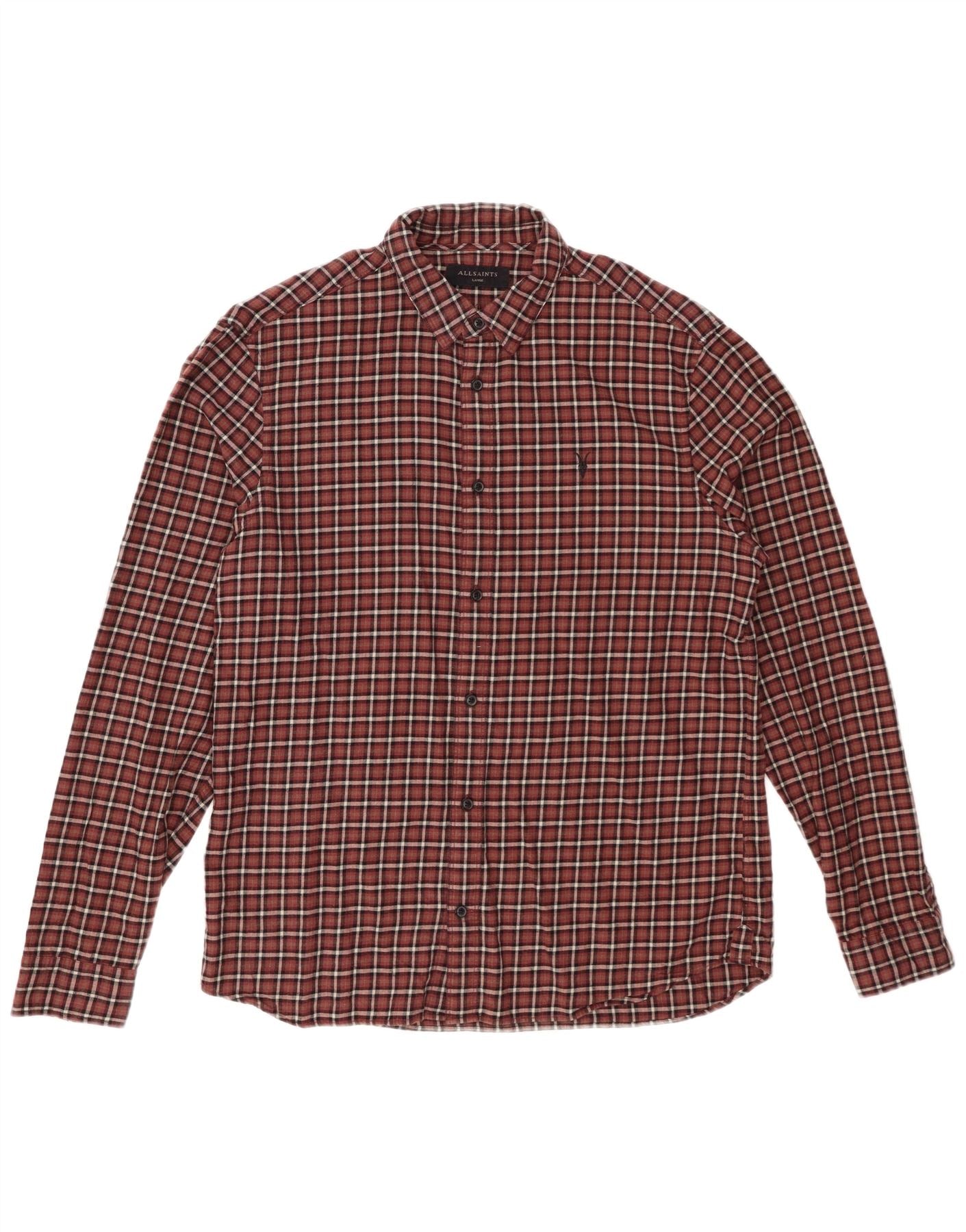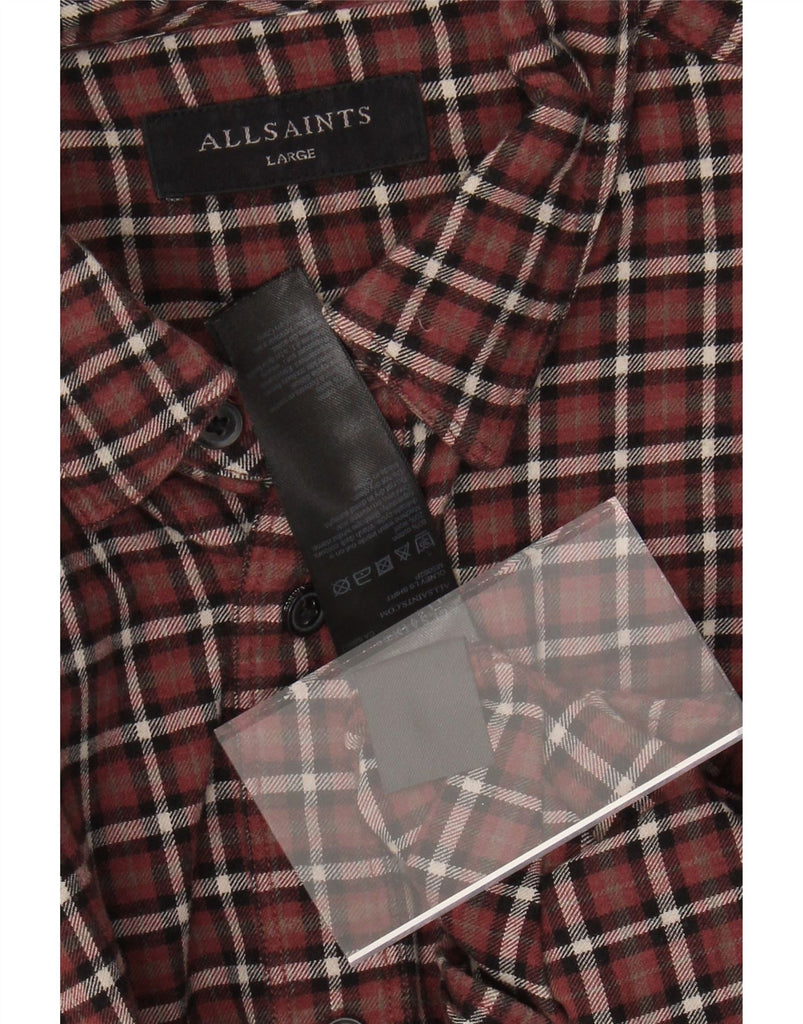ALL SAINTS Camisa de franela para hombre Algodón a cuadros burdeos grande