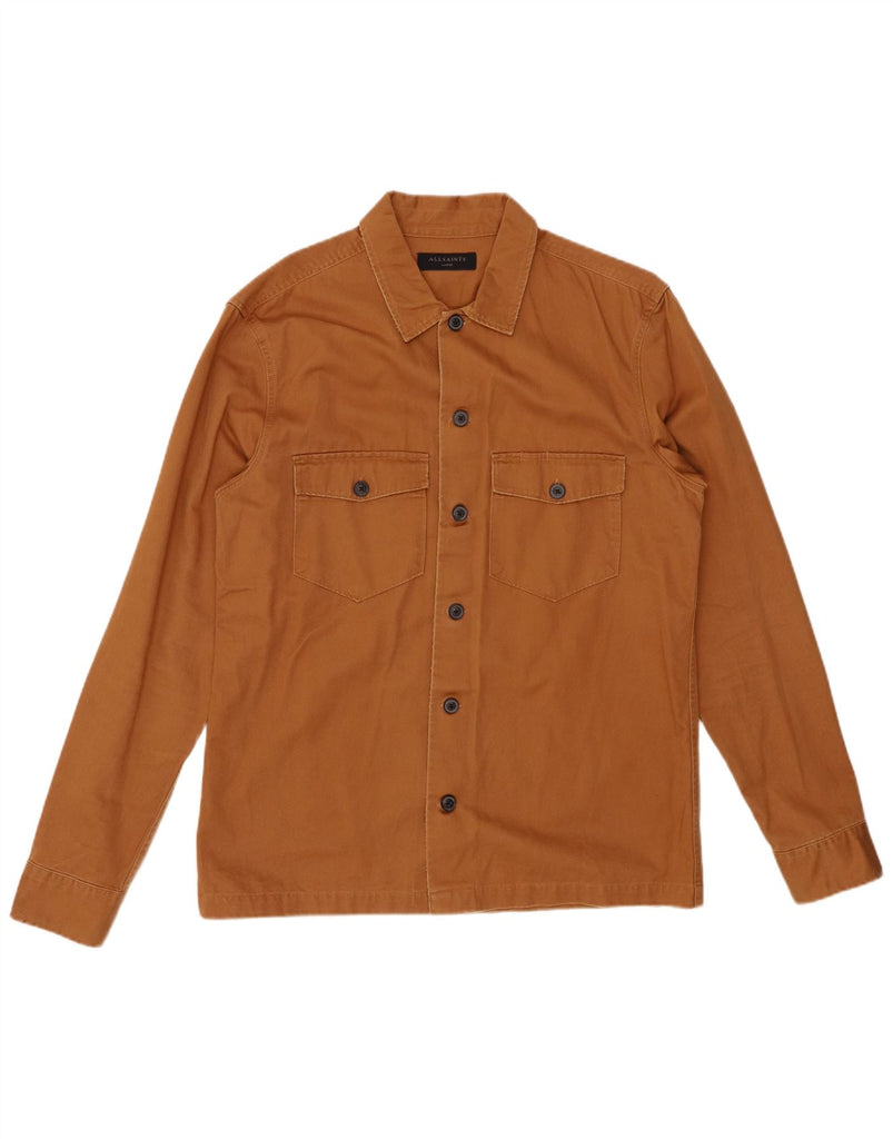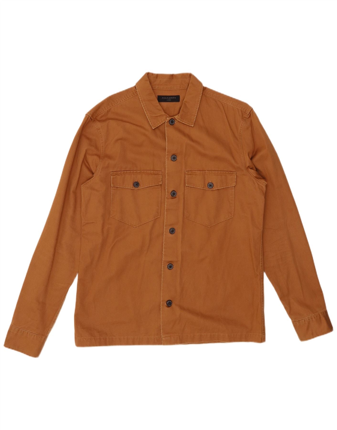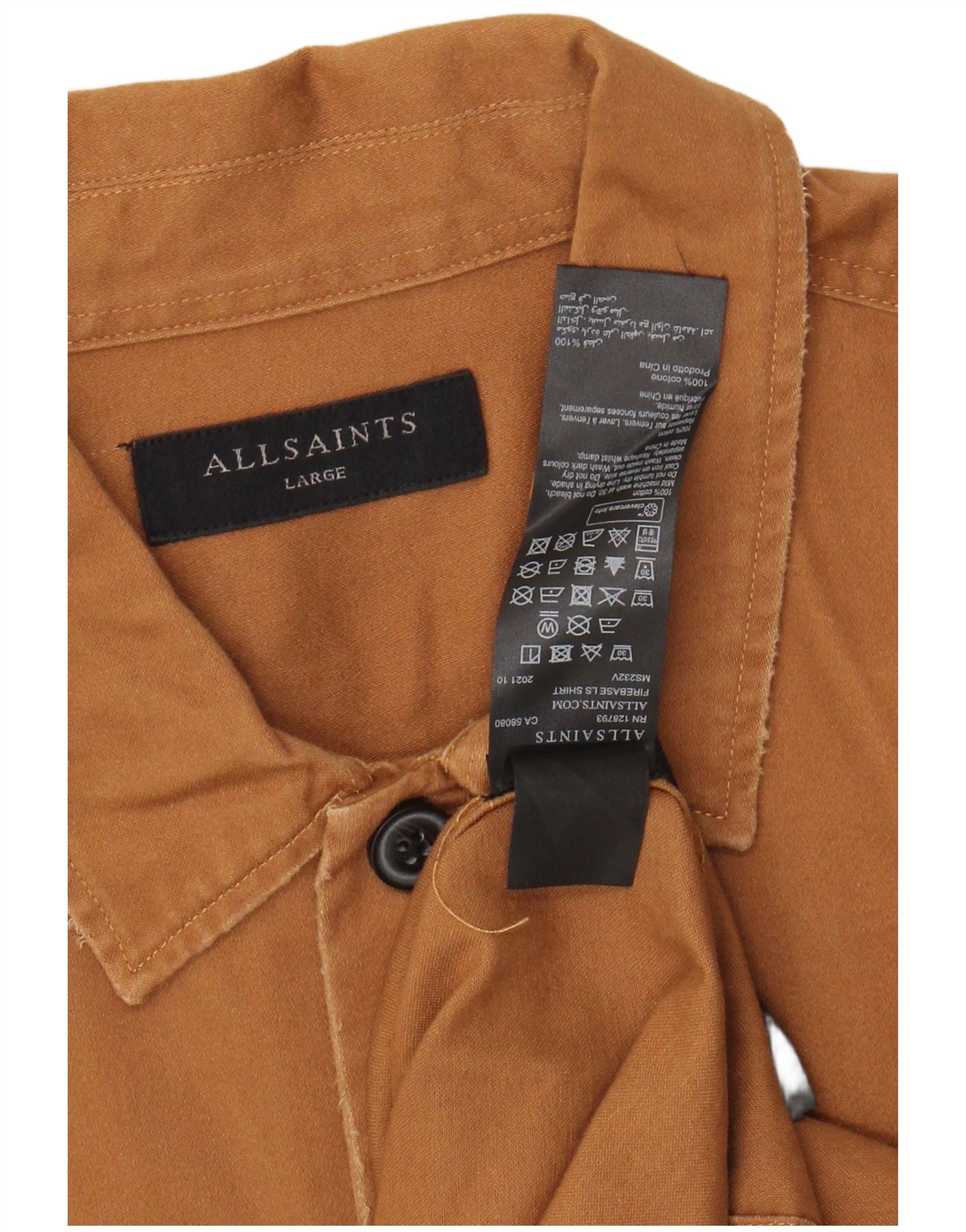 ALL SAINTS Camisa sobrecamisa para hombre grande de algodón marrón