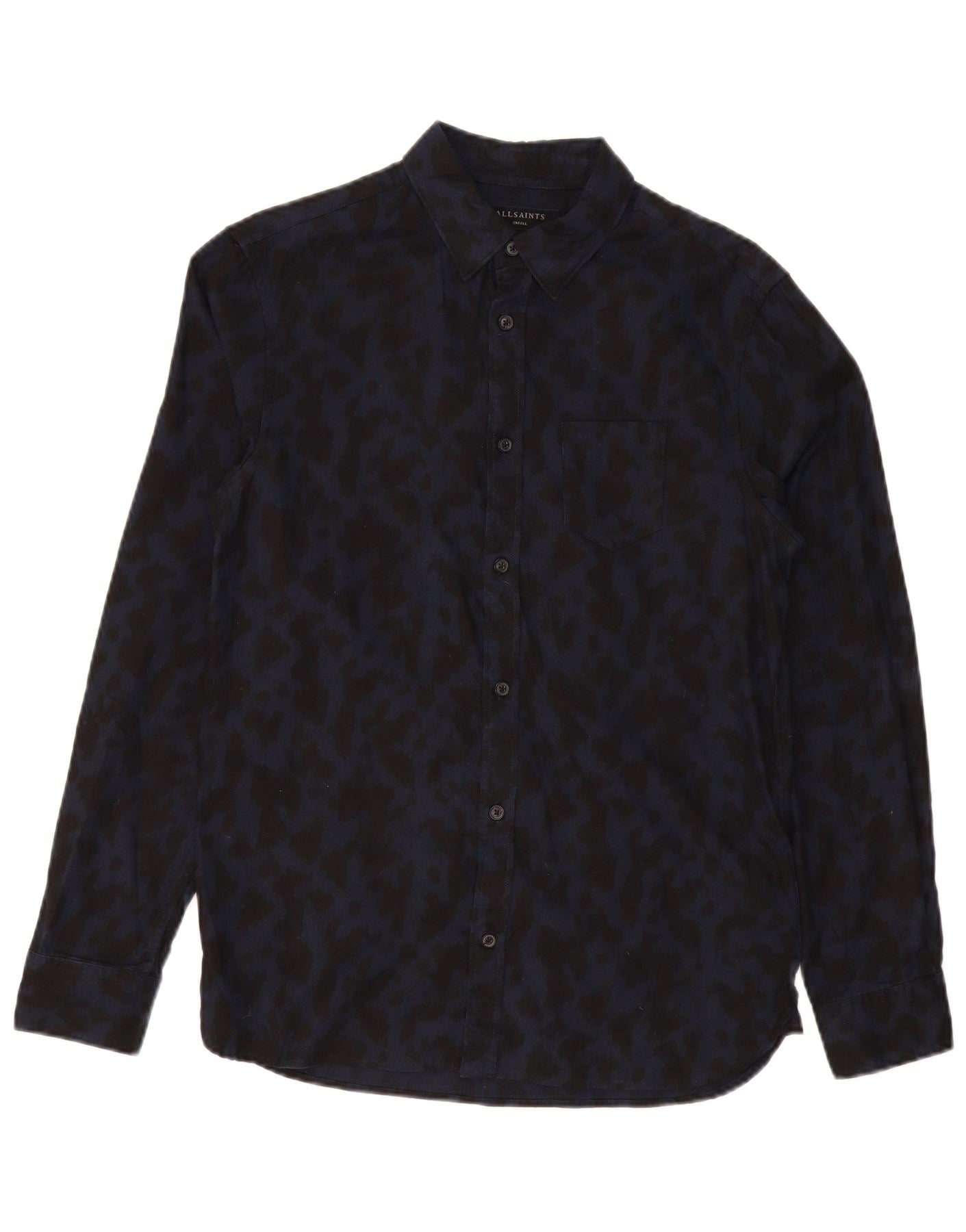 ALL SAINTS Camisa Hombre Pequeña Azul Marino Estampado Animal Algodón