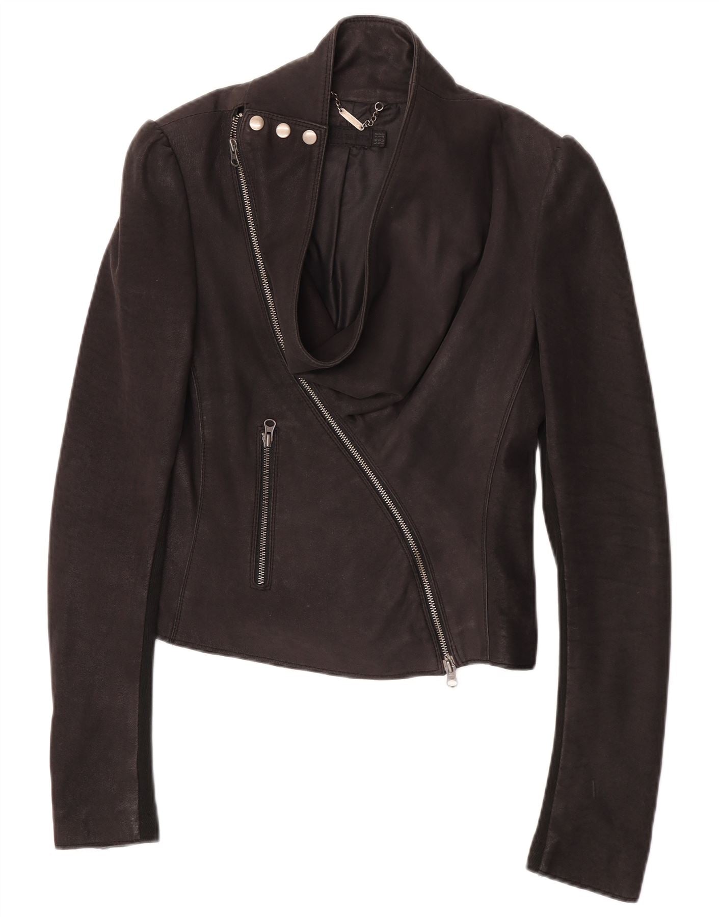 All Saints Chaqueta de cuero para mujer UK 12 Medium Black Leather