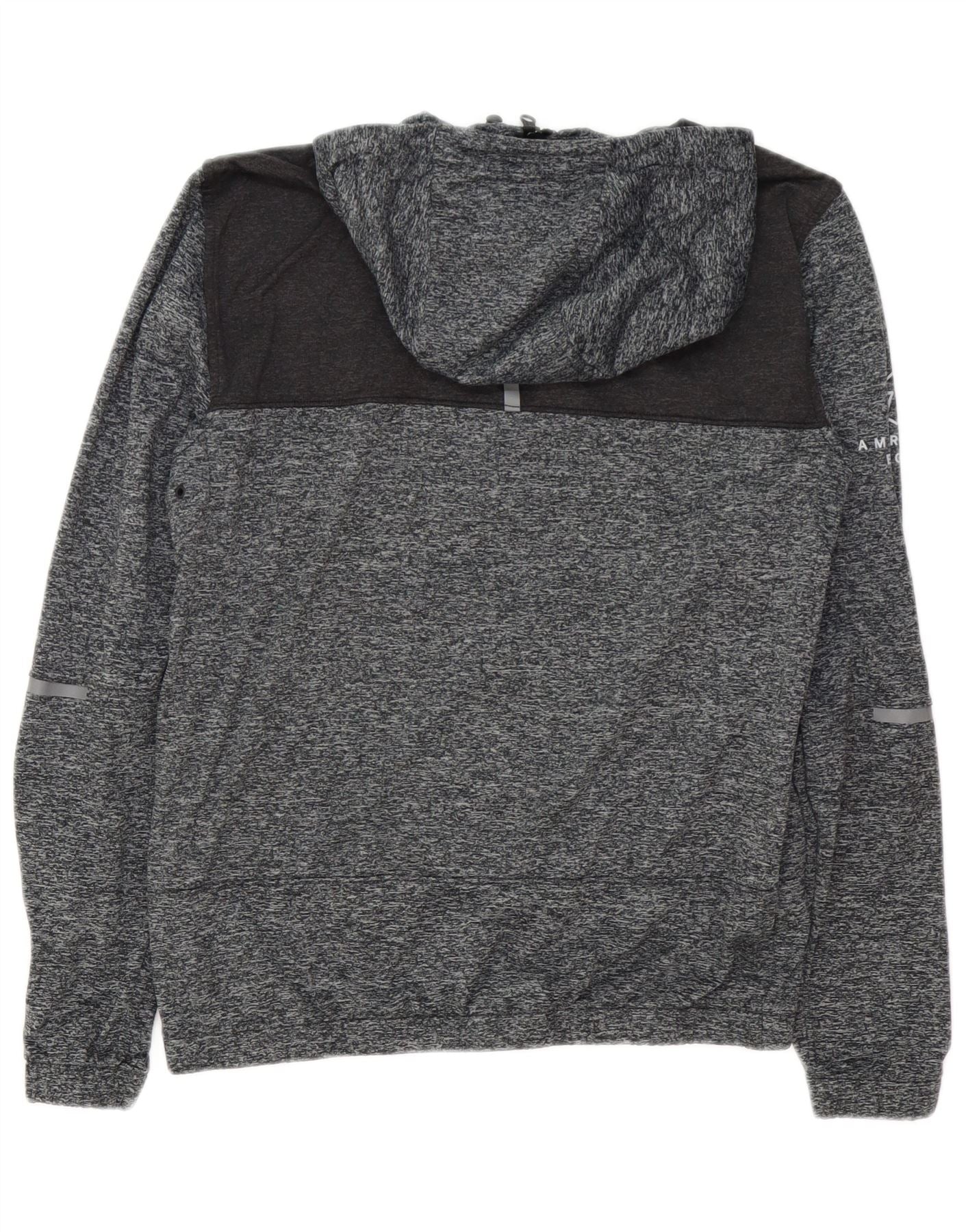 AMERICAN EAGLE Suéter con capucha y cremallera gráfica para hombre, tamaño pequeño, gris moteado