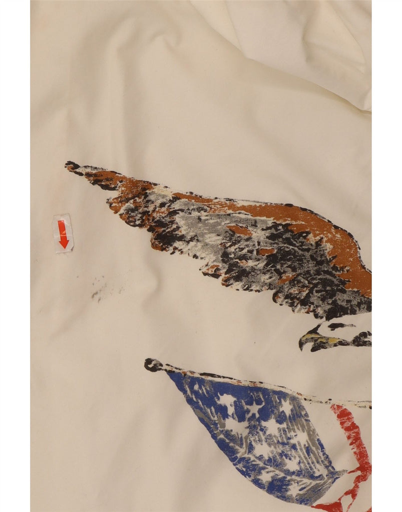 AMERICAN LEGEND Mens Graphic Hooded Parka Jacket UK 38 Medium White Cotton