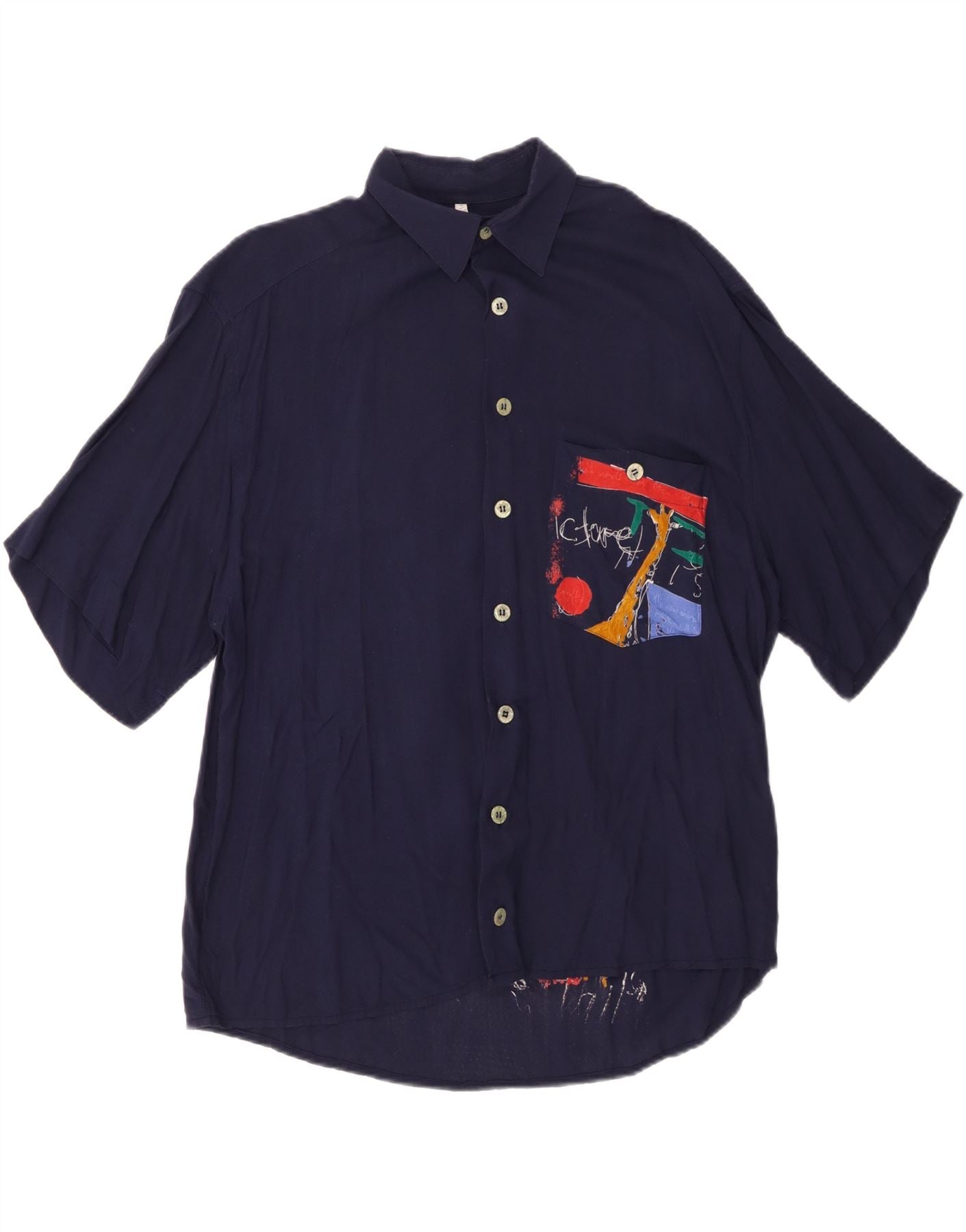 ANGELO LITRICO Camisa con estampado abstracto para hombre UK 39/40 Medium Azul marino