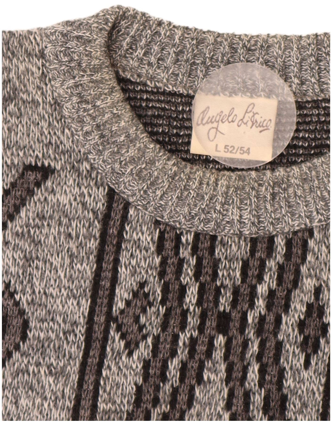 ANGELO LITRICO Jersey de cuello redondo para hombre IT 52/54 Large Grey Geométrico