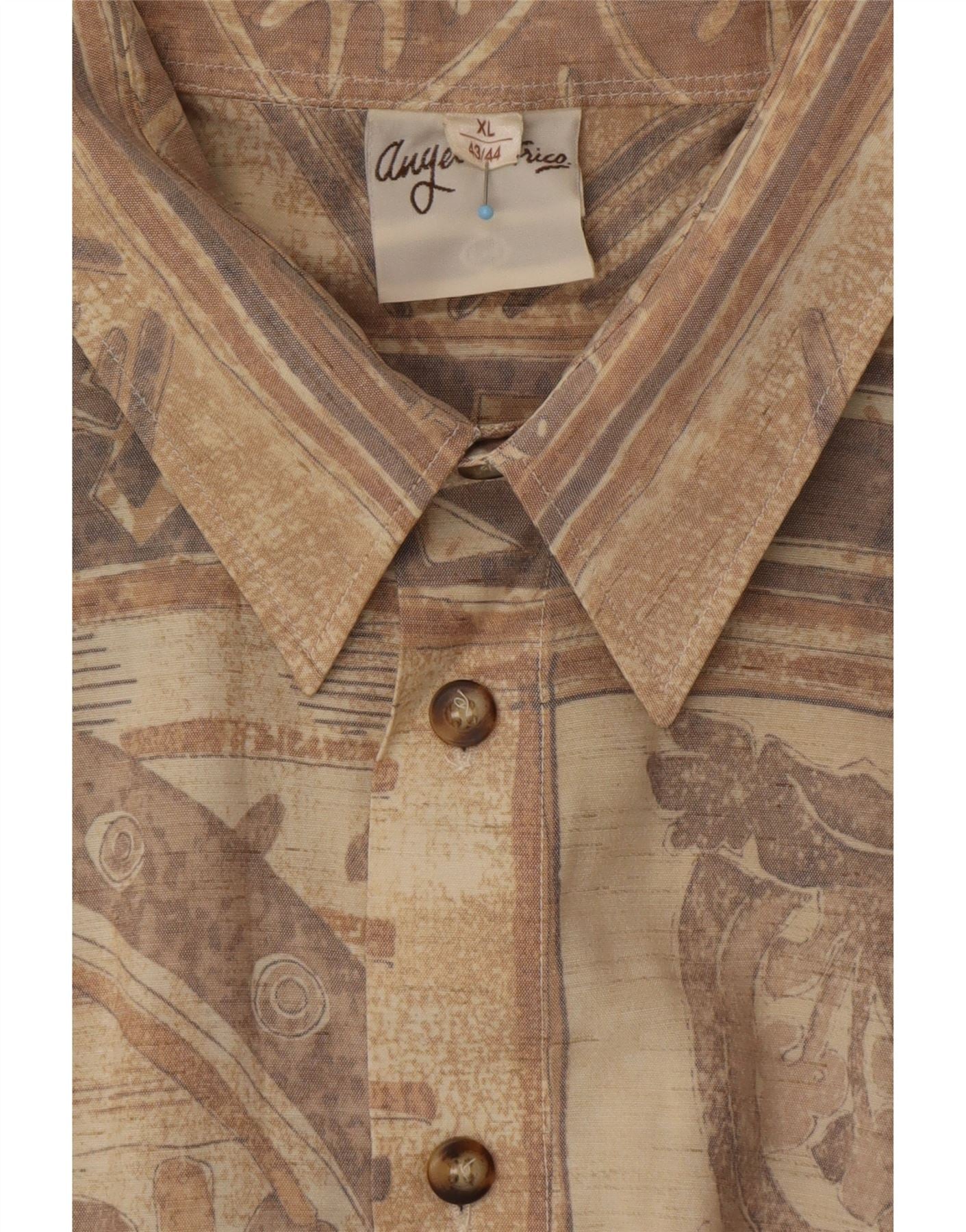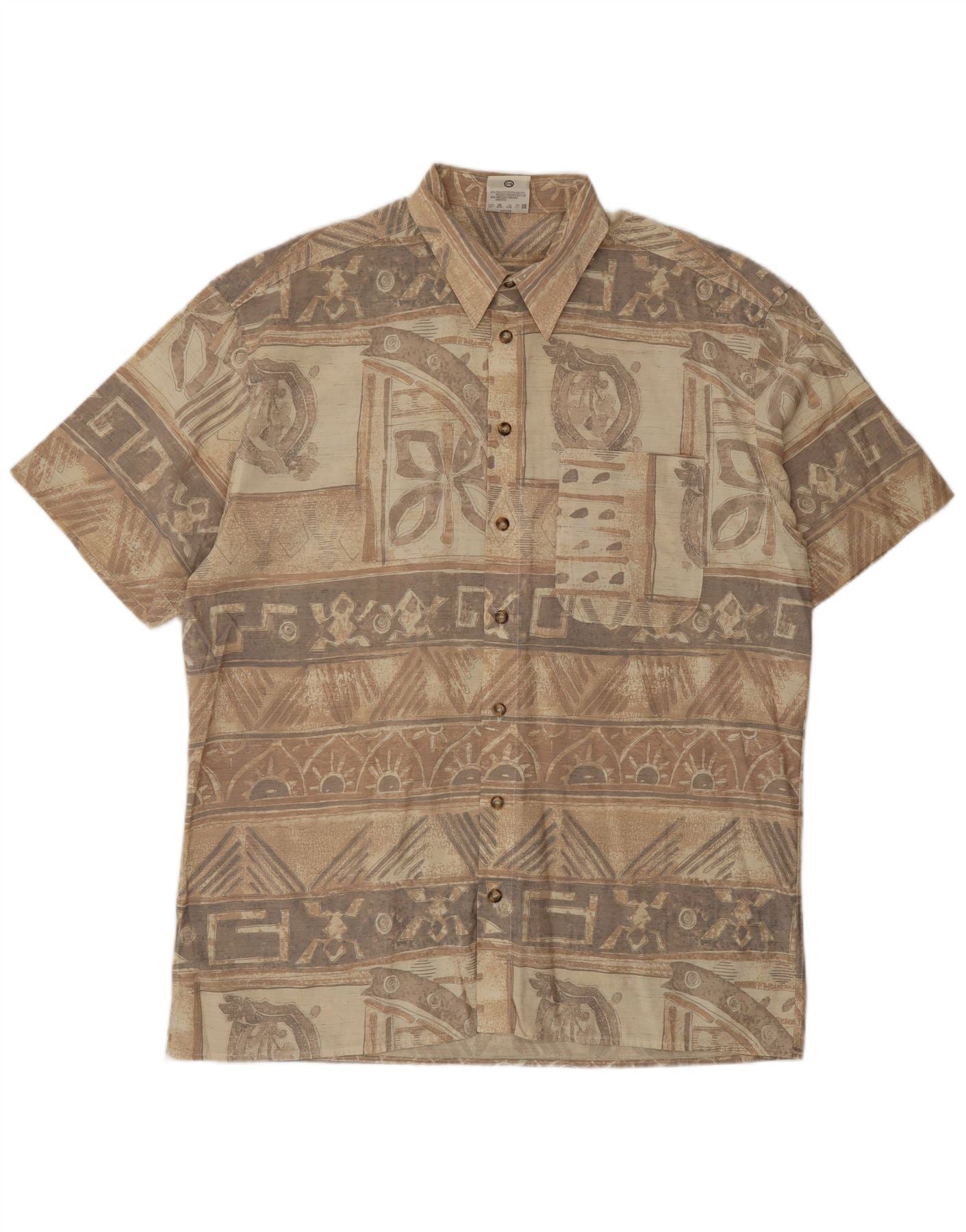 ANGELO LITRICO Camisa Manga Corta Hombre Talla 43/44 XL Beige Geométrico Azteca