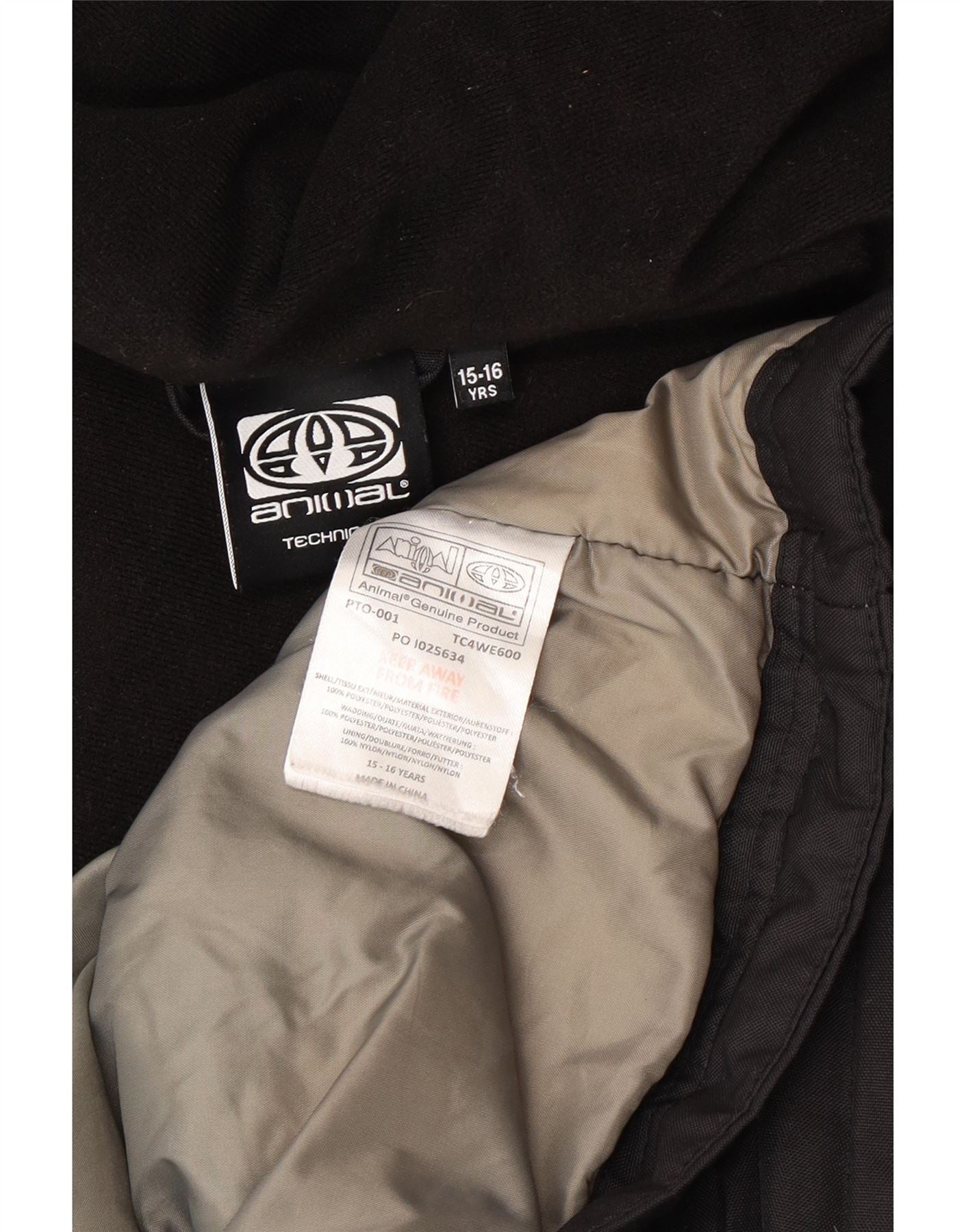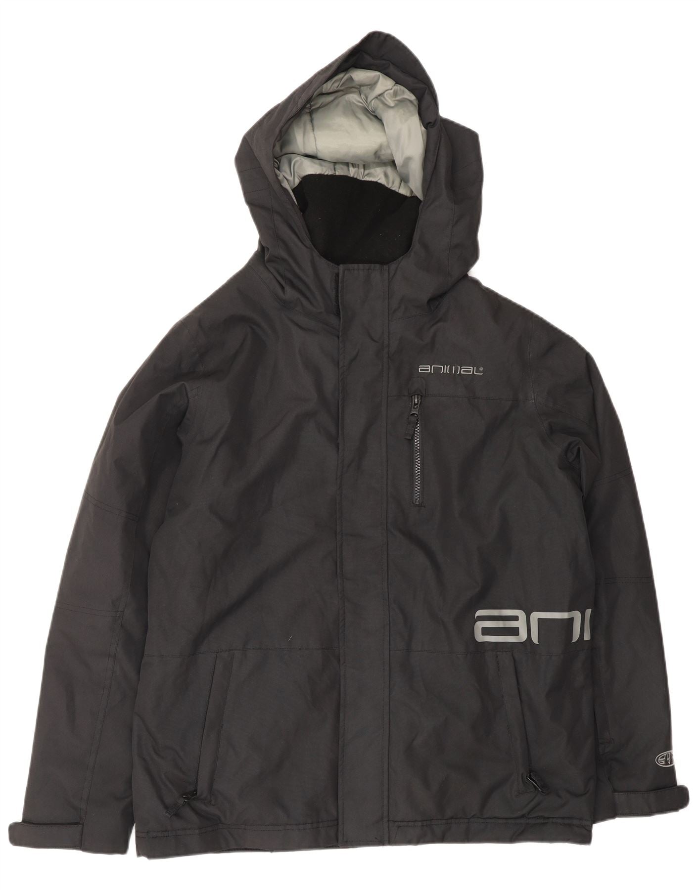 ANIMAL Boys Graphic Hooded Windbreaker Jacket 15-16 Years Black Polyester