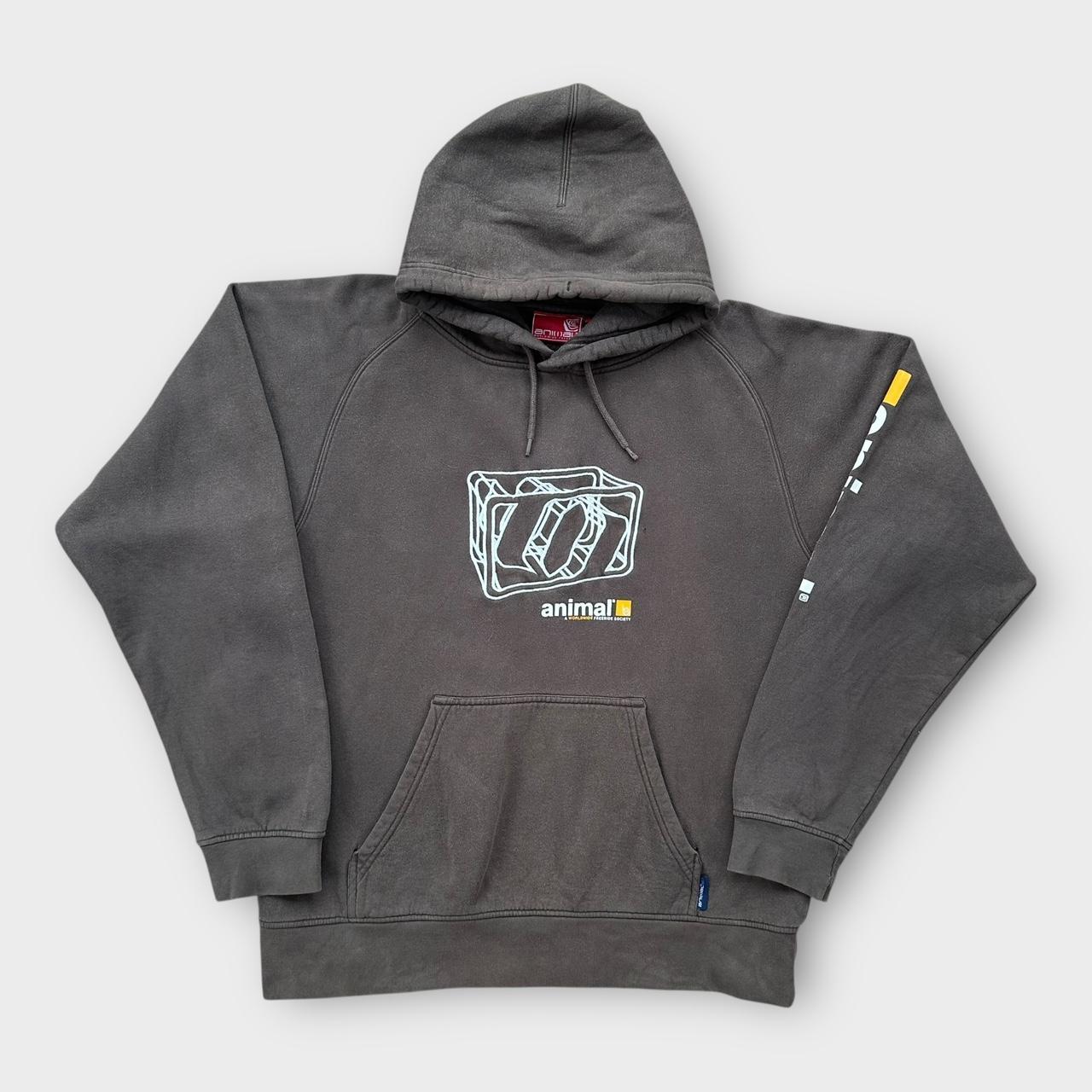 Principios de la década de 2000 Y2K Animal surf usa sudadera con capucha bordada en marrón con bordado en el pecho y estampado en el brazo