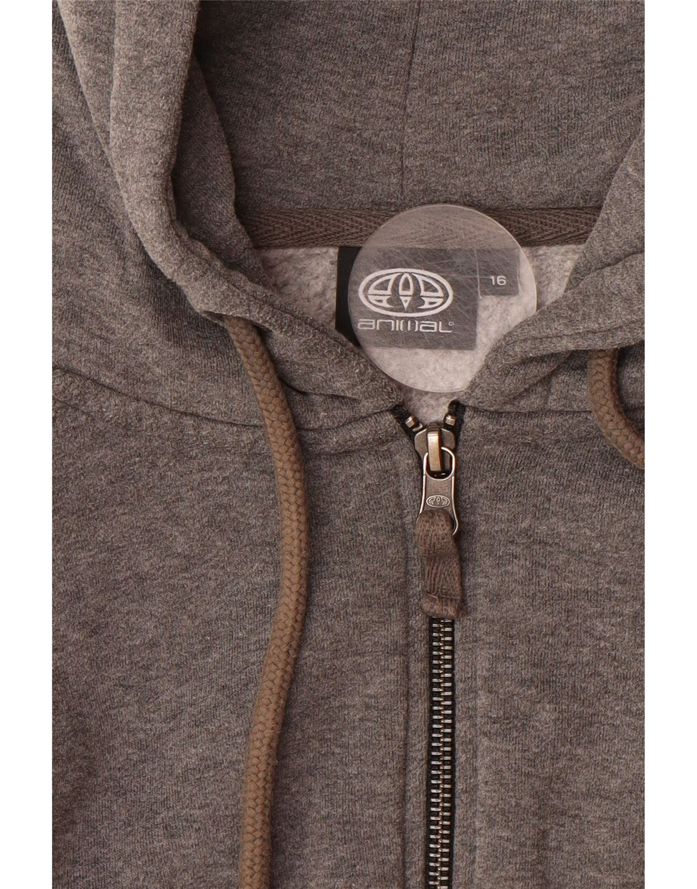 ANIMAL Womens Graphic Zip Hoodie Sweater UK 16 Large Grey Cotton