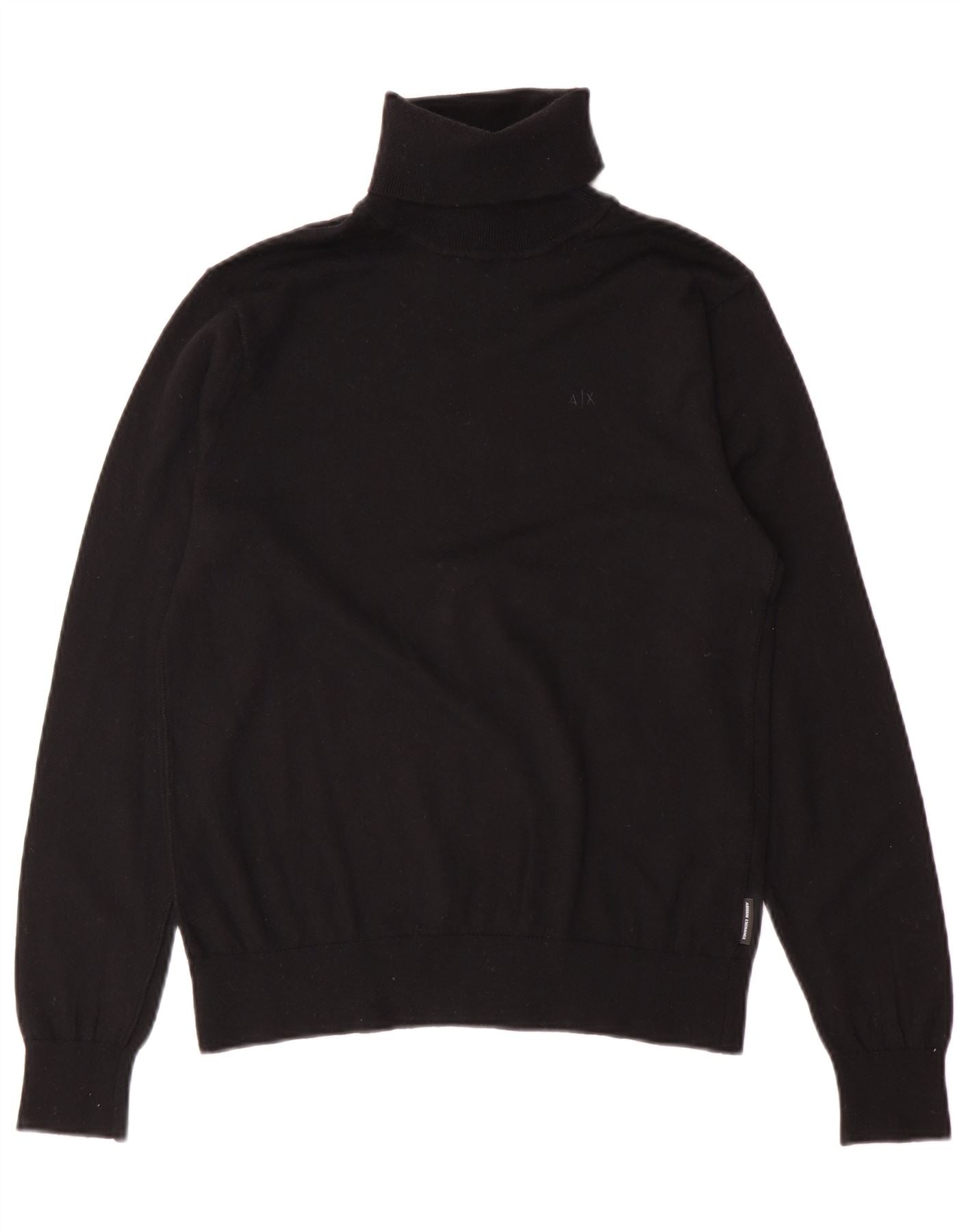 Armani Exchange Jersey con cuello vuelto para hombre, talla pequeña, lana virgen negra
