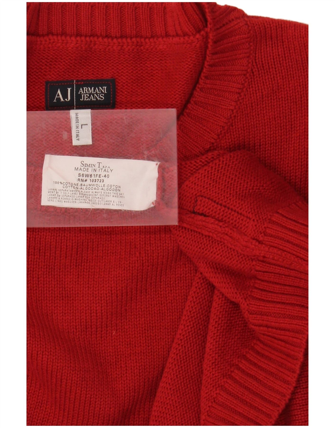 ARMANI JEANS Jersey con cuello redondo para hombre, talla grande, algodón rojo