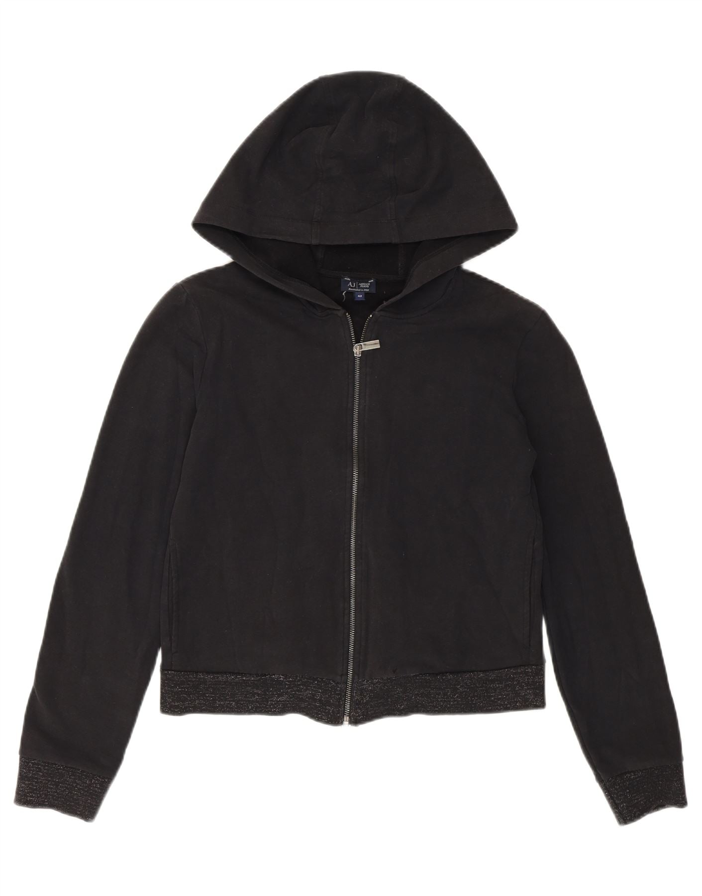 ARMANI JEANS Womens Crop Graphic Zip Hoodie Sweater EU 42 Large Black